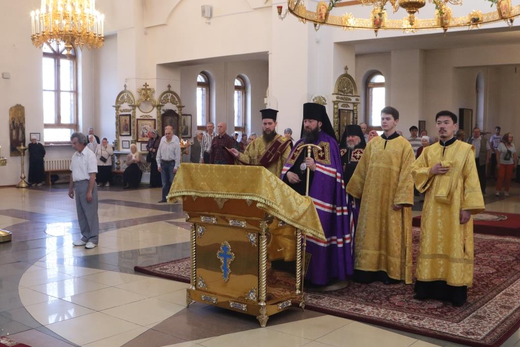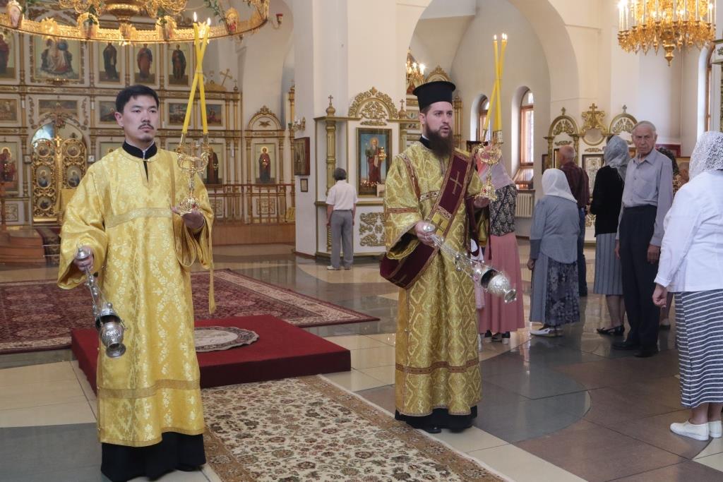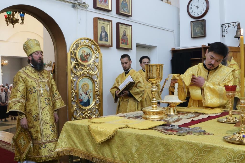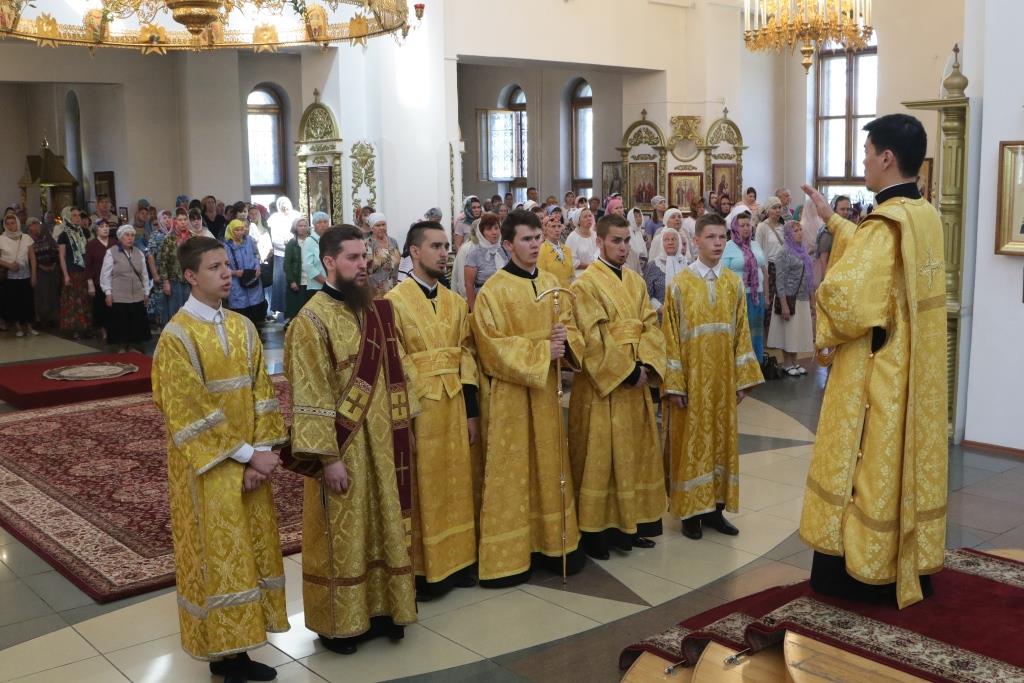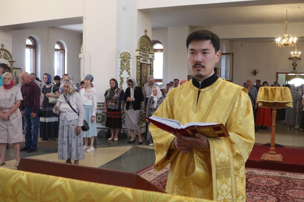 Песнопения воскресного дня и Божественной Литургии исполнял хор кафедрального собора под управлением регента Н. Романцовой. За Богослужением молились насельники Свято-Троицкого мужского монастыря, прихожане главного храма Восточного Казахстана и сотрудники епархиального управления.