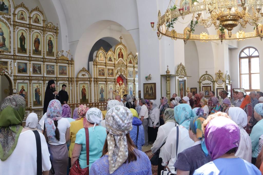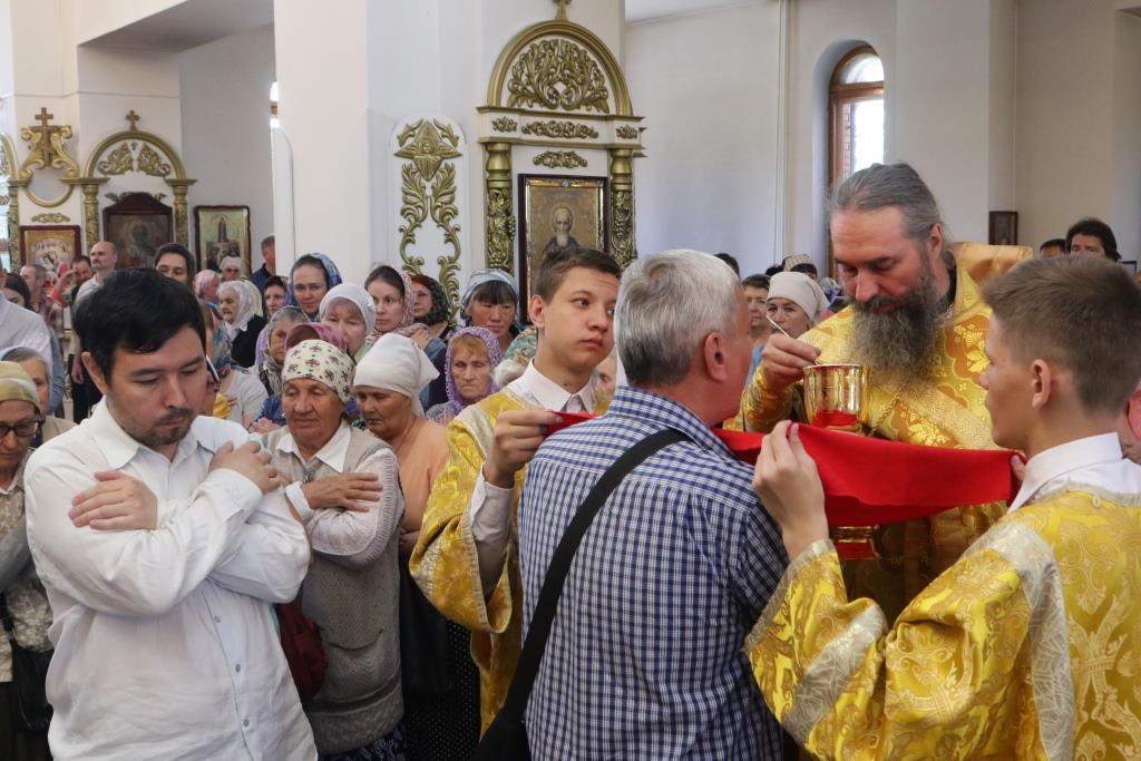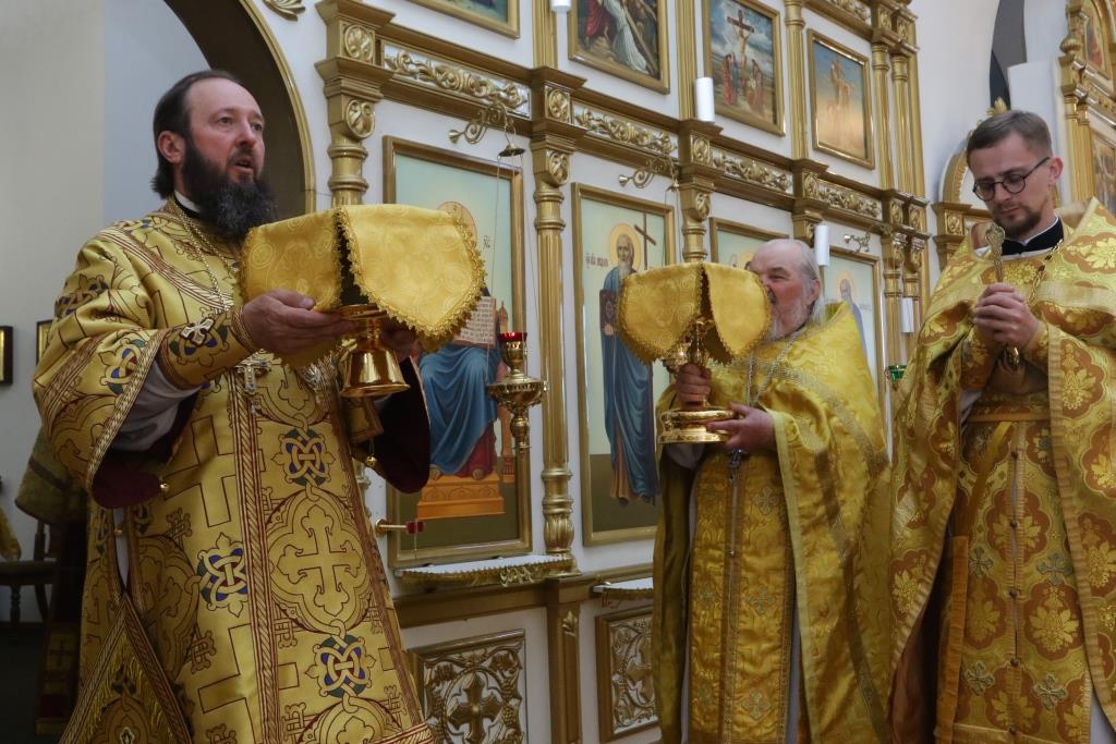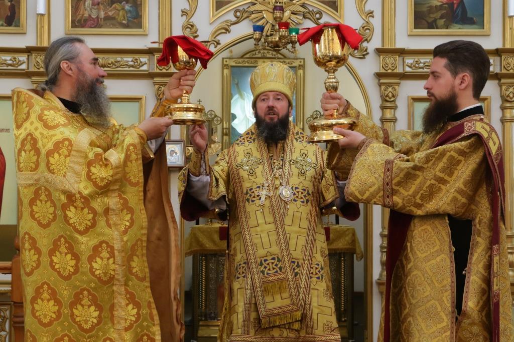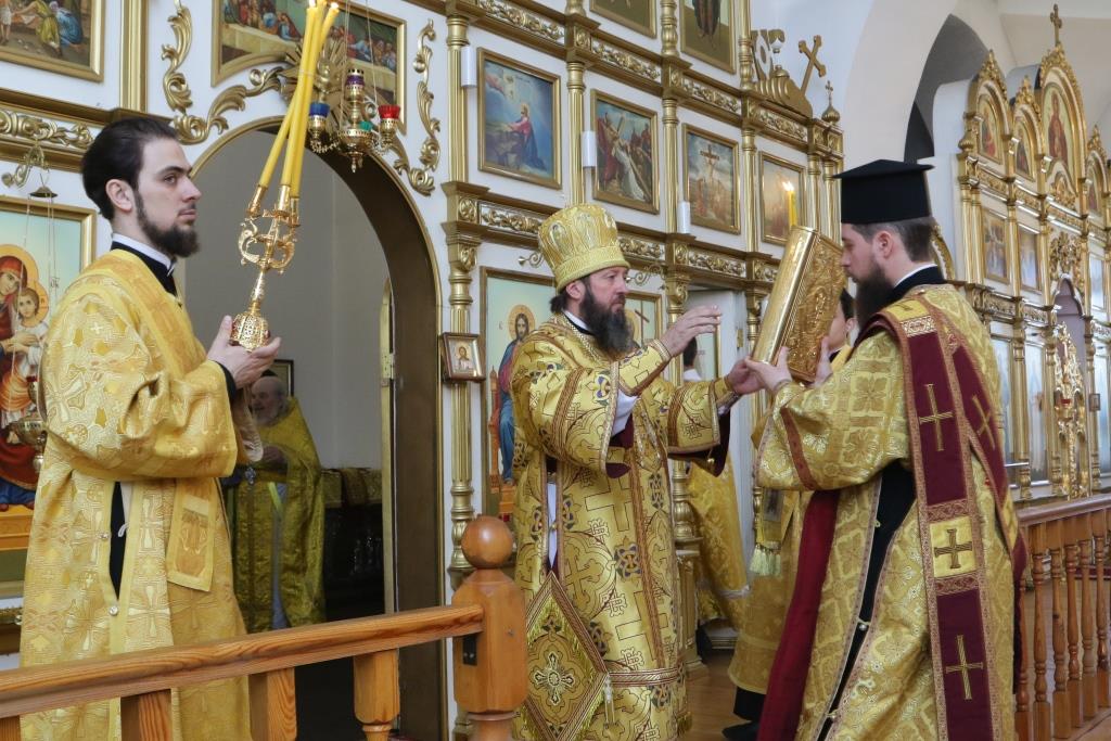 Перед причастием мирян проповедовал иеромонах Никодим (Авдеев). По окончании Божественной Литургии Преосвященнейший Архипастырь поздравил духовенство и молящихся с праздником и обратился к народу Божию со словами проповеди.