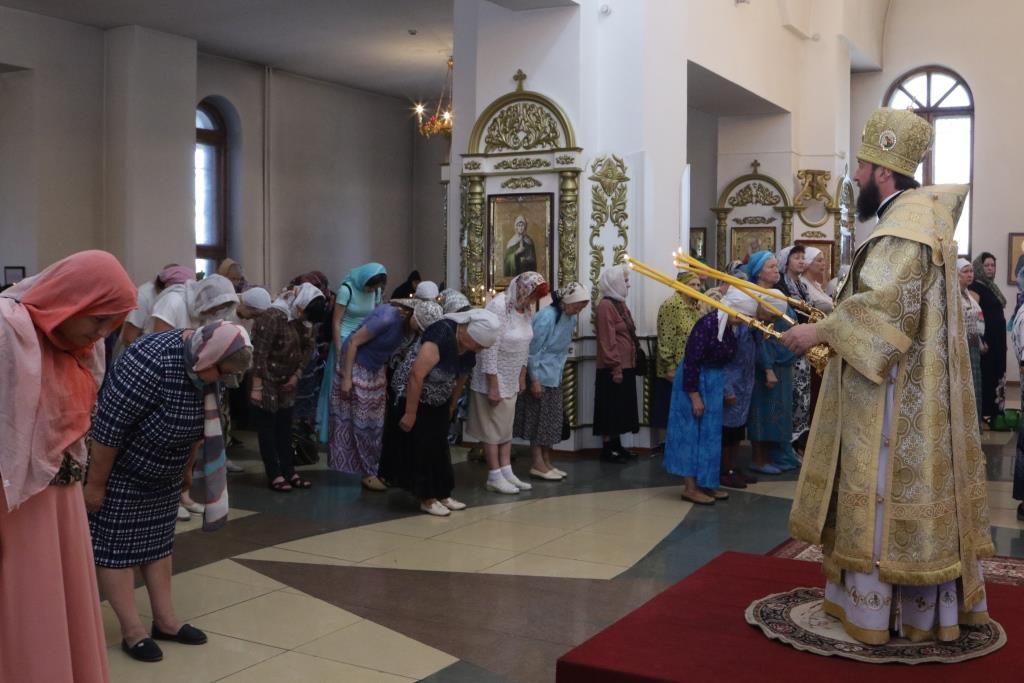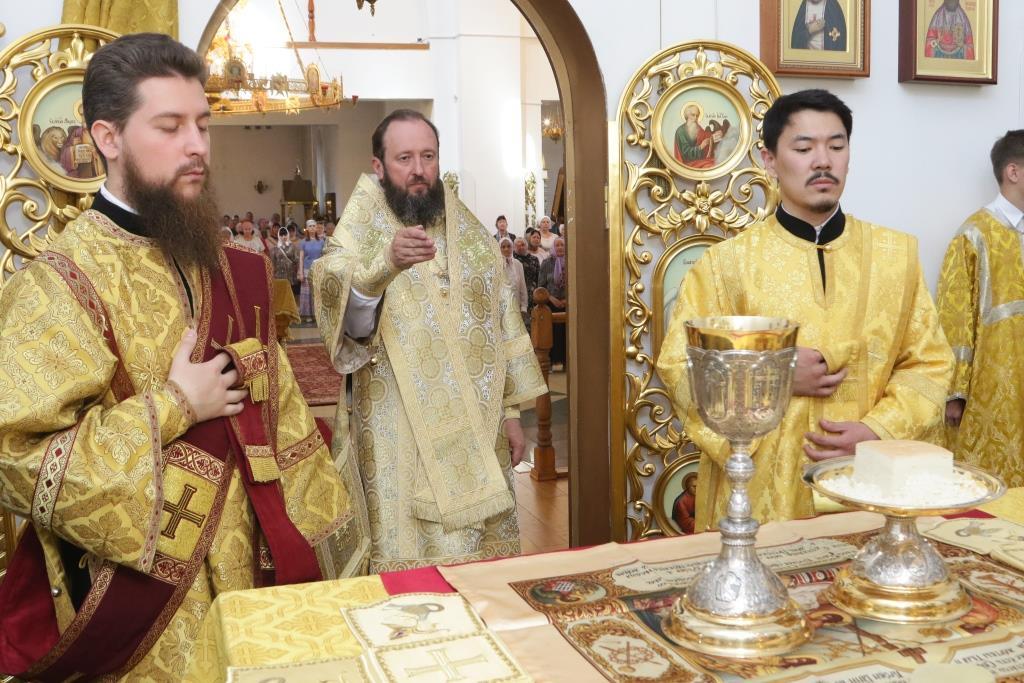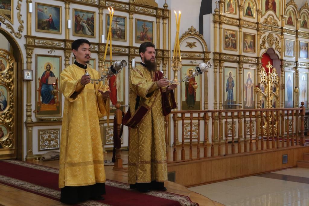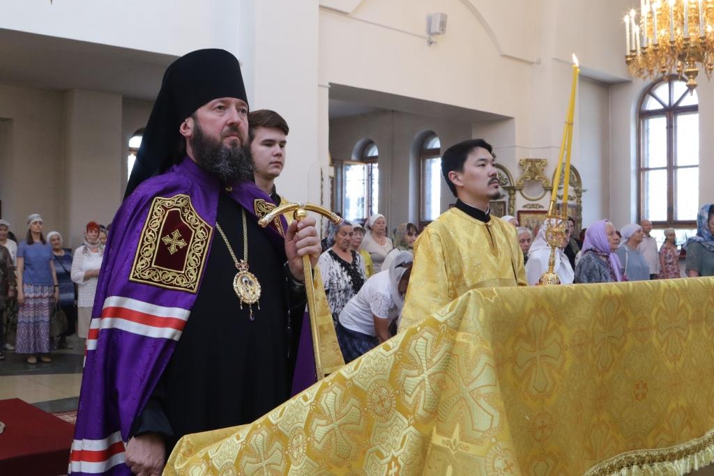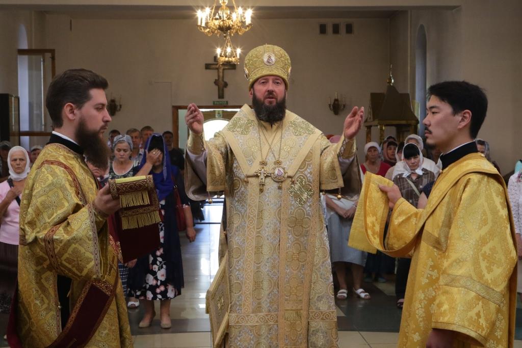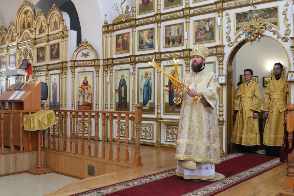 В воскресный день Управляющий Усть-Каменогорской и Семипалатинской епархией Преосвященнейший епископ Амфилохий совершил Божественную Литургию святителя Иоанна Златоуста в главном храме Восточного Казахстана – кафедральном соборе во имя святого апостола Андрея Первозванного города Усть-Каменогорска. Архипастырю сослужили: духовник епархии архимандрит Спиридон (Теплухин), ключарь кафедрального собора иеромонах Никодим (Авдеев), клирики собора иерей Константин Дьяков, иеродиакон Мефодий (Шевчук), секретарь епархии диакон Илия Кван.