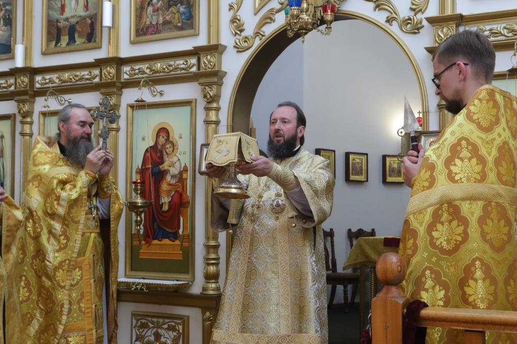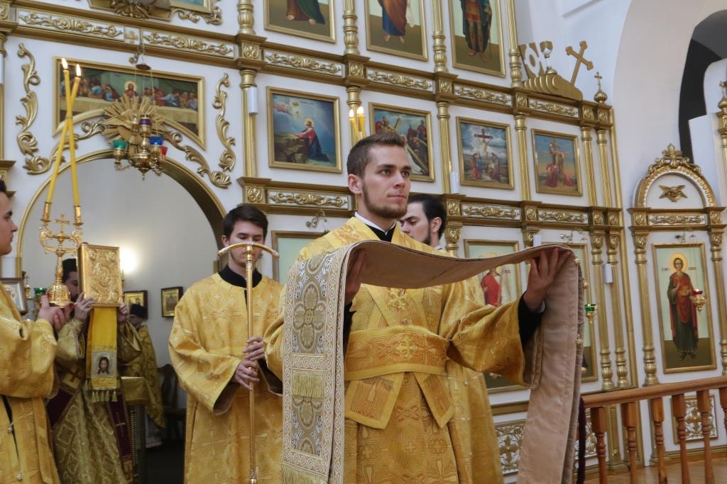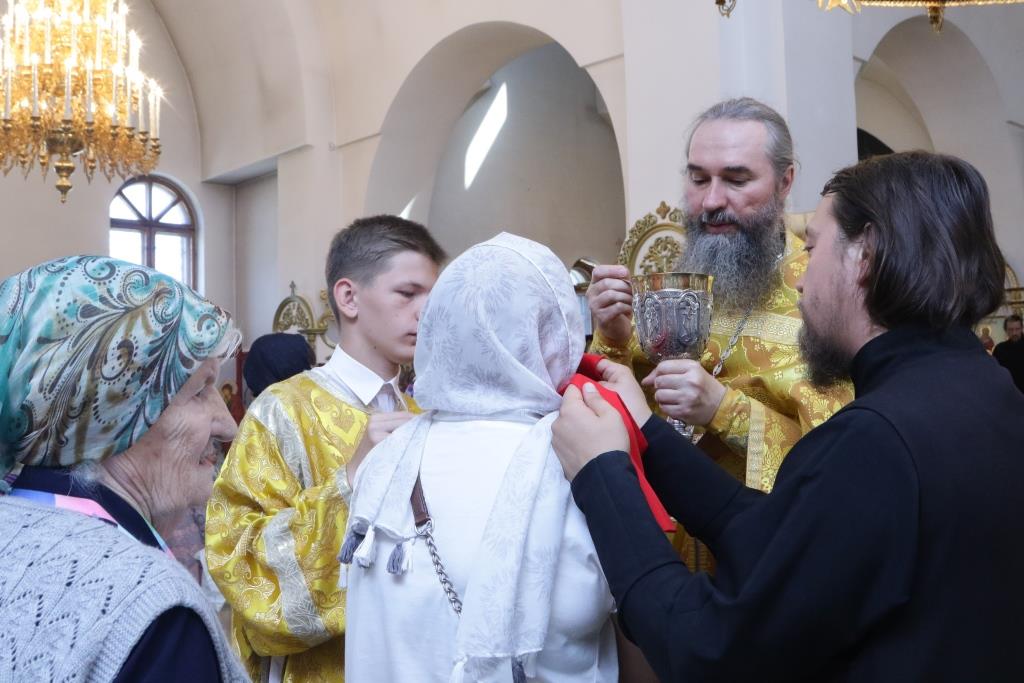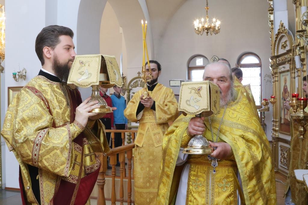 Песнопения Божественной Литургии исполнял хор Андреевского собора под управлением регента Н. Романцовой. За воскресным Богослужением молились прихожане кафедрального собора, насельники Свято-Троицкого мужского монастыря, сотрудники епархиального управления. Перед причастием мирян проповедовал иеромонах Никодим (Авдеев).