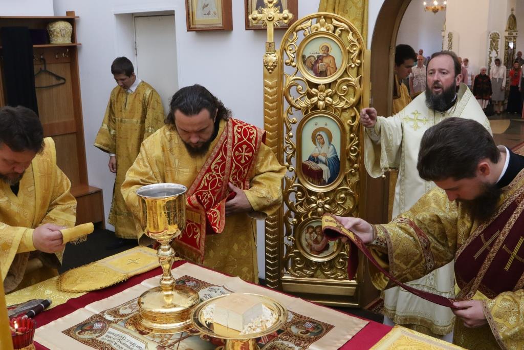 Проповедь перед причастием мирян произнес ключарь кафедрального собора.