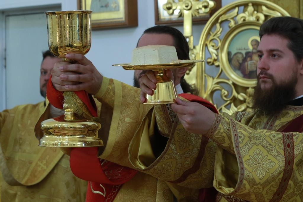 Проповедь перед причастием мирян произнес ключарь кафедрального собора.