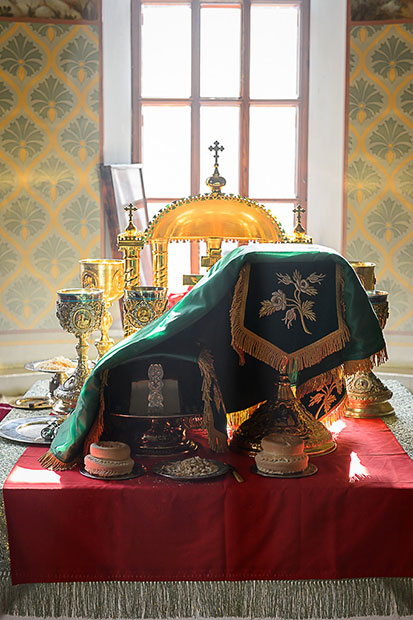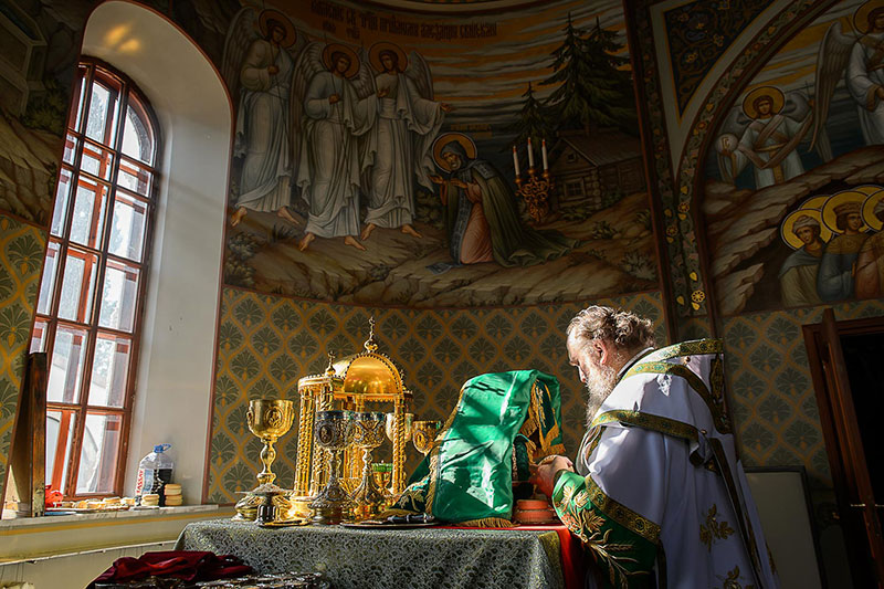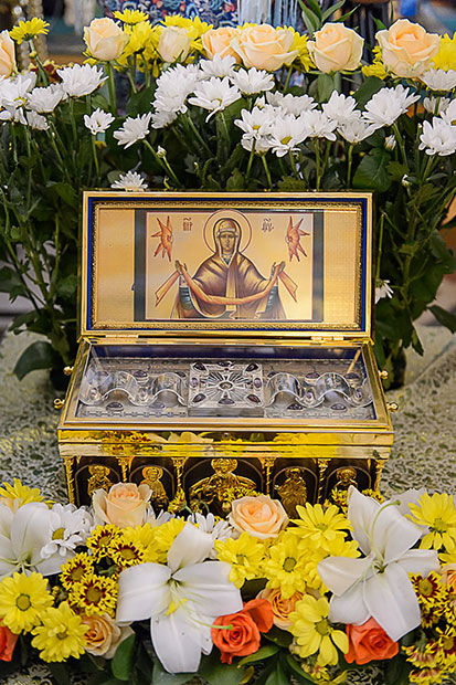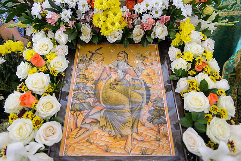 В завершение Литургии состоялось славление перед ковчегом с частью Пояса Пресвятой Богородицы и образом пророка Божия Илии.