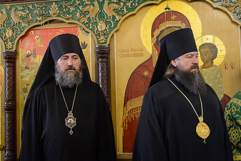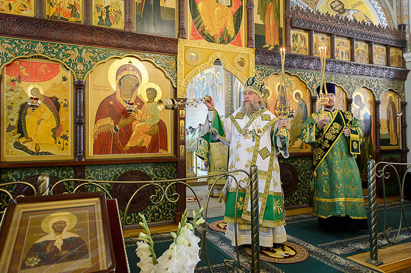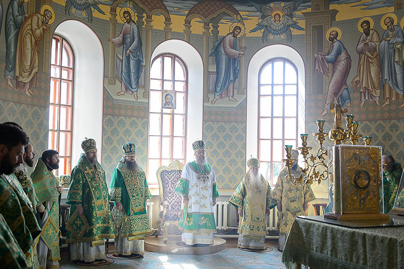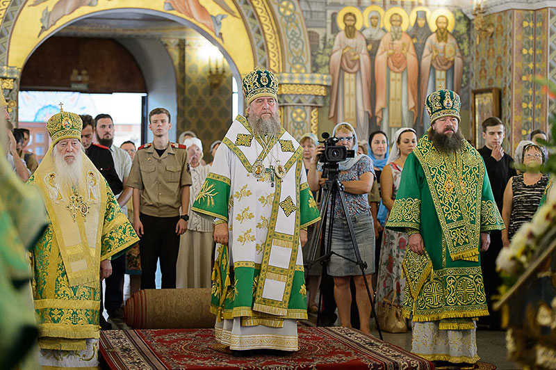 За Литургией возносились заупокойные молитвы о митрополите Вятском Хрисанфе (Чепиле) и приснопамятных казахстанских иерархах, в числе которых митрополит Иосиф (Чернов) и архиепископ Софония (Сокольский), и и обо всех ради утверждения Православия в Казахстане потрудившихся. Также поминались почившие духовные наставники митрополита Александра – архиепископ Тихвинский Мелитон (Соловьев), настоятель Троицкой церкви села Волково протоиерей Иоанн Евдокимов и настоятель Троицкого храма села Быстрица протоиерей Константин Гулин.