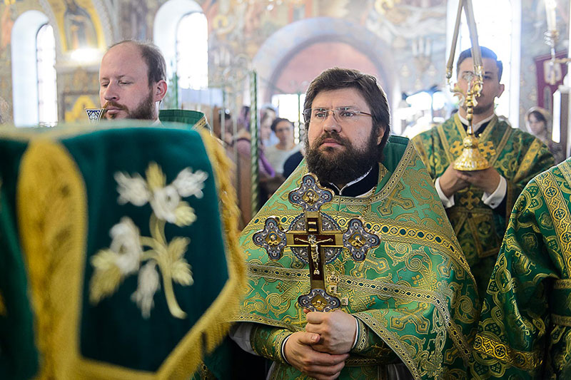 Проповедь после запричастного стиха произнес руководитель информационного отдела Митрополичьего округа протоиерей Евгений Иванов.