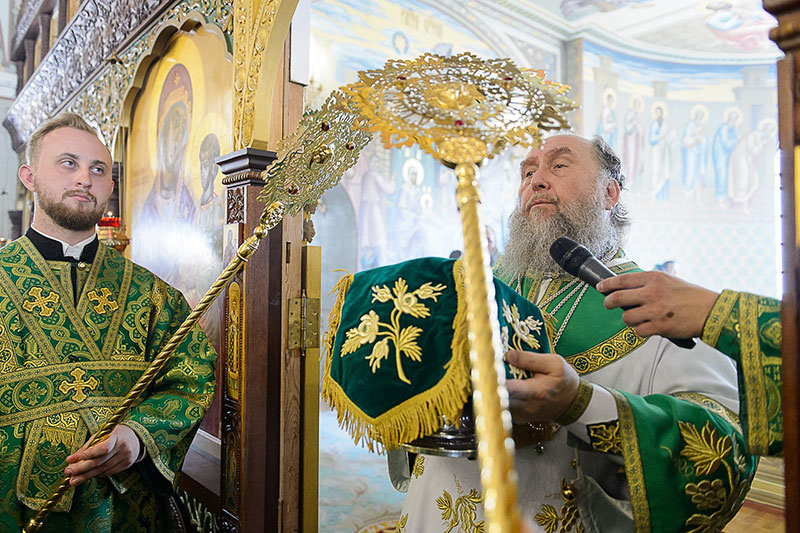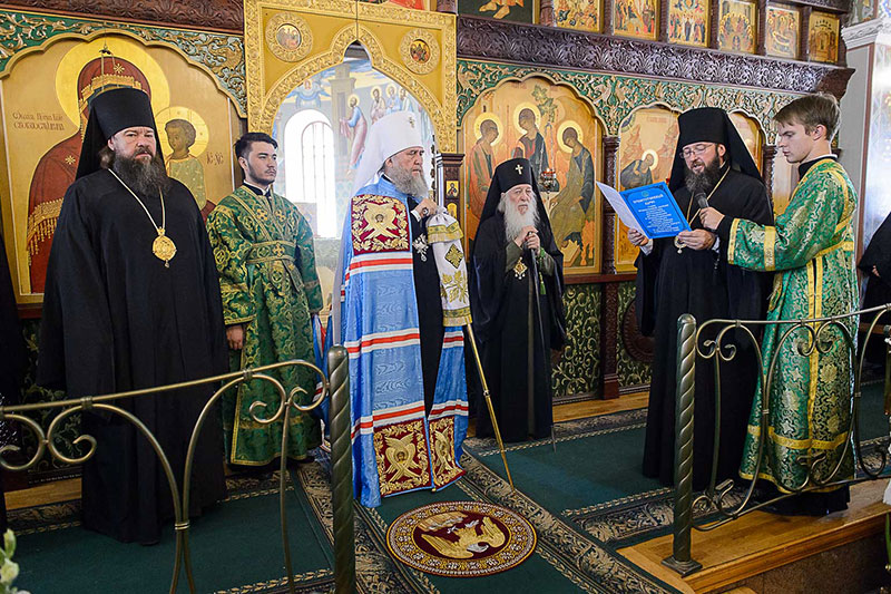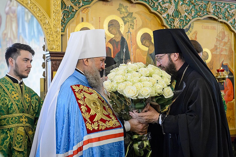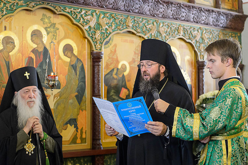 Было возглашено многолетие «Великому Господину и отцу нашему Кириллу, Святейшему Патриарху Московскому и всея Руси и Свято-Троицкой Сергиевой Лавры священноархимандриту; Главе и Преосвященным архипастырям Казахстанского Митрополичьего округа, стране Казахстанской, Президенту, властем, воинству и народу ея; всему освященному собору и всем православным христианом».