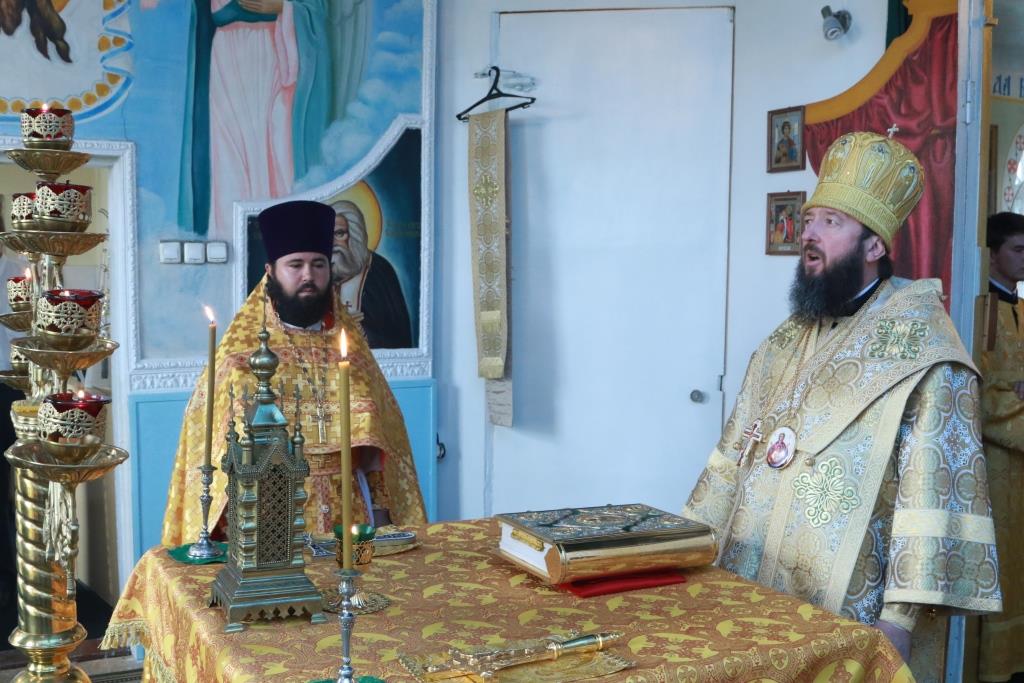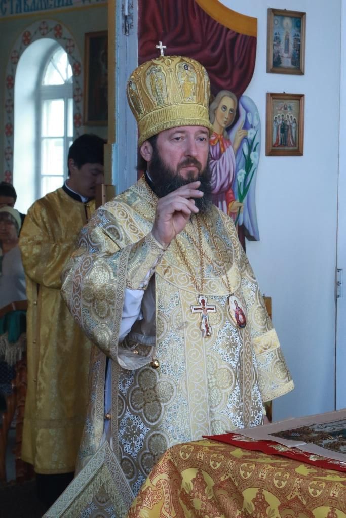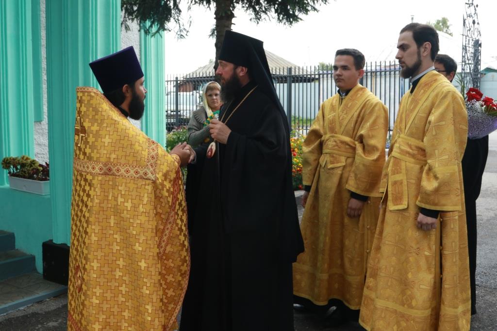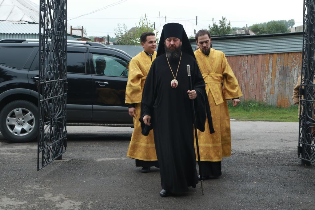 По пути в кафедральный город Преосвященный Архипастырь посетил Екатерининский храм поселка Новая Бухтарма.