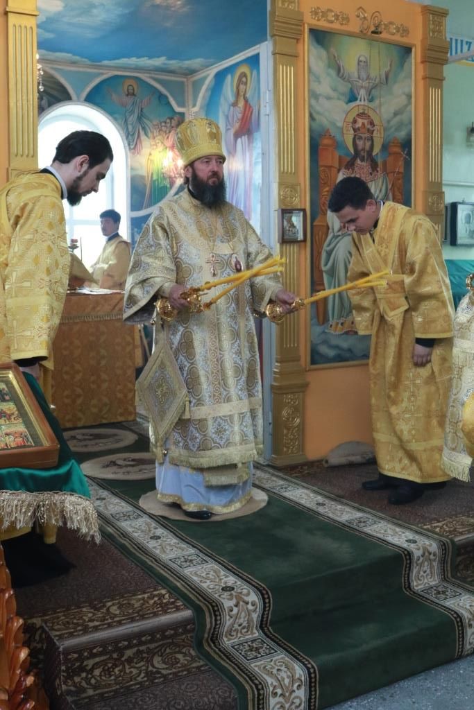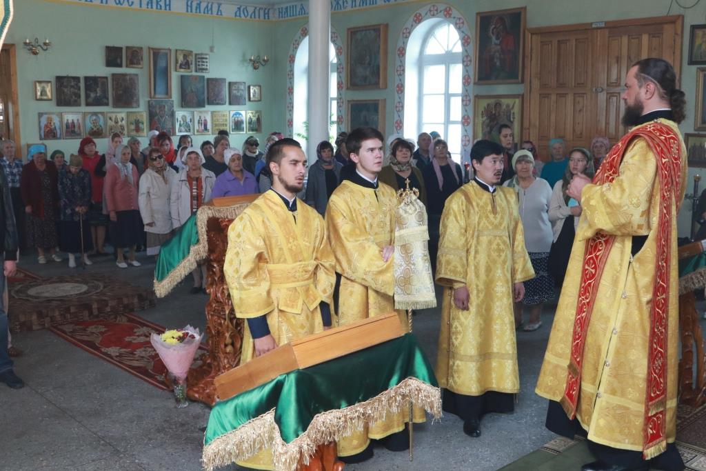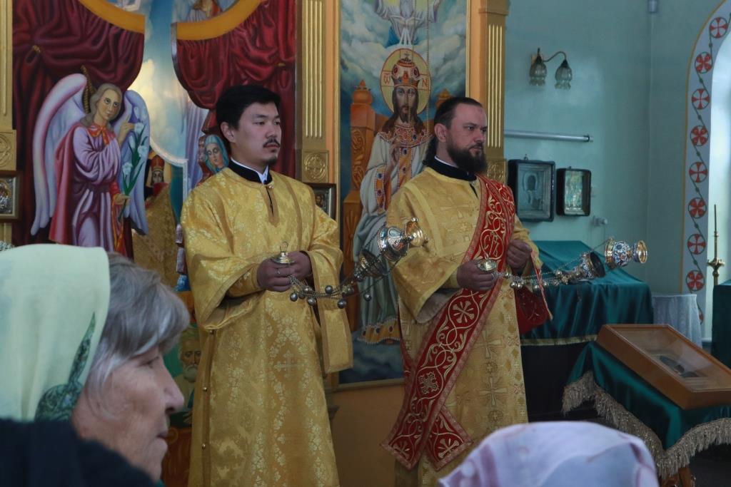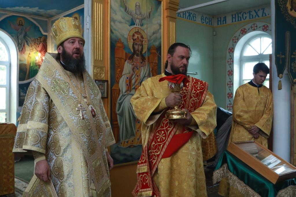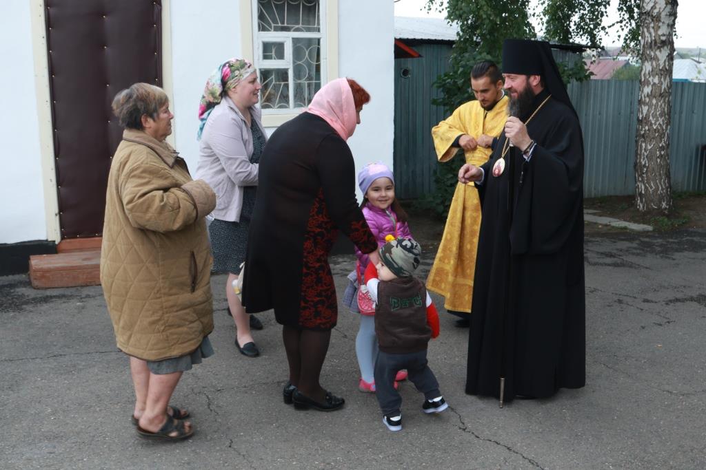 По пути в кафедральный город Преосвященный Архипастырь посетил Екатерининский храм поселка Новая Бухтарма.