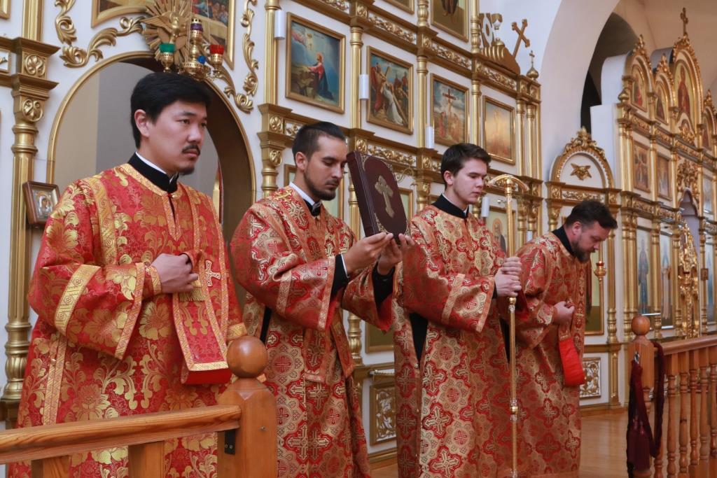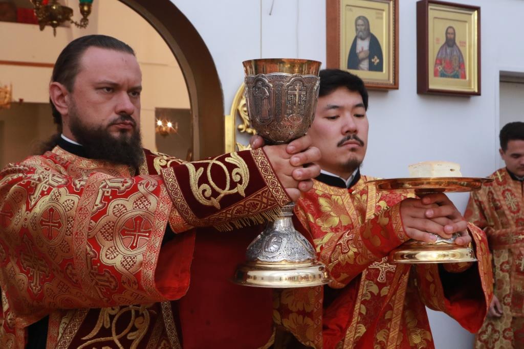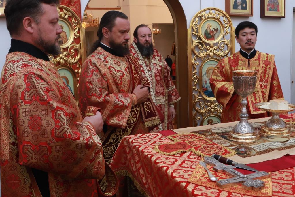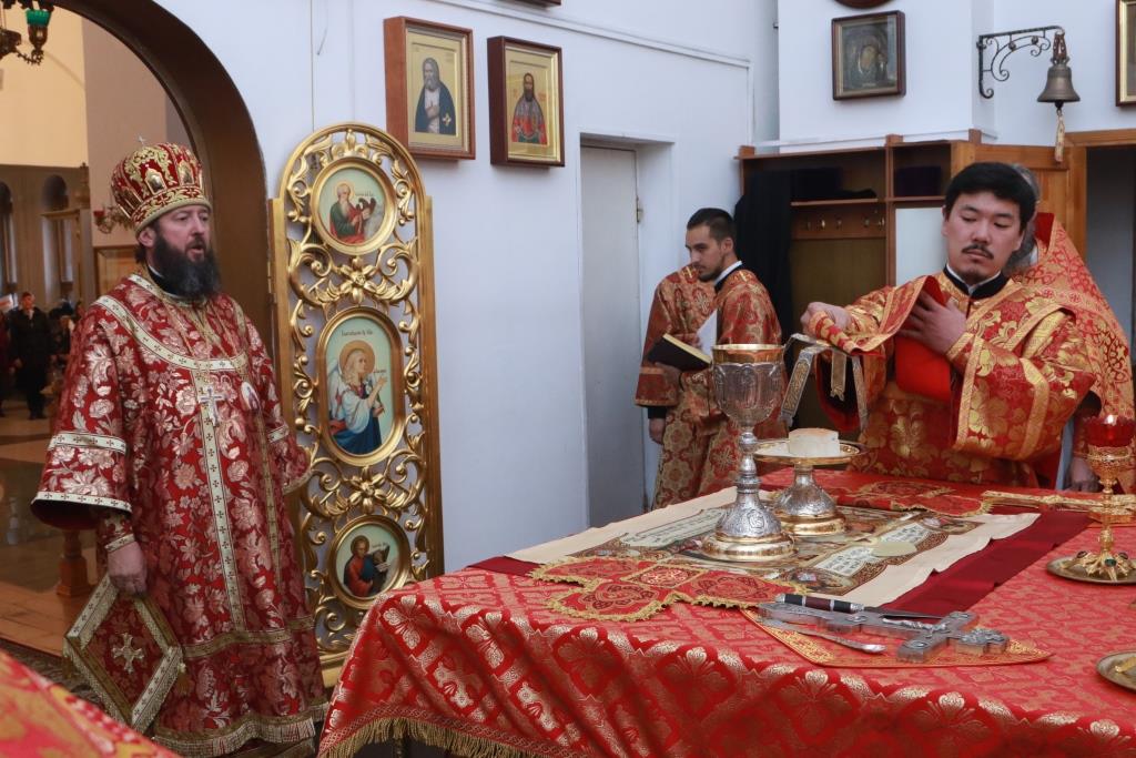 Управляющий Усть-Каменогорской и Семипалатинской епархией Преосвященнейший епископ Амфилохий возглавил служение Божественной Литургии святителя Иоанна Златоуста в главном храме Рудного Алтая –кафедральном соборе во имя святого апостола Андрея Первозванного города Усть-Каменогорска. Владыке епископу сослужили: духовник епархии архимандрит Спиридон (Теплухин), ключарь кафедрального собора иеромонах Никодим (Авдеев), клирик собора иерей Алексий Клепиков, заведующий канцелярией епархии иерей Константин Дьяков, секретарь епархии диакон Илия Кван, протодиакон Андрей Дудник, диакон Владимир Лаврешин.