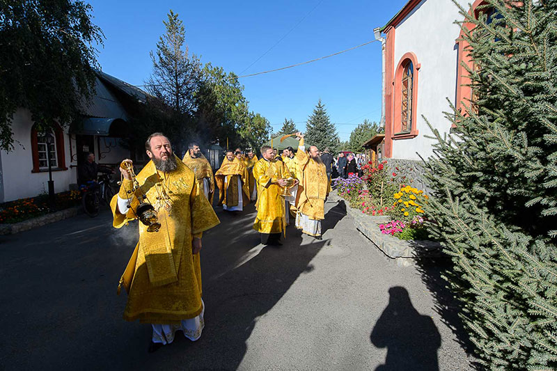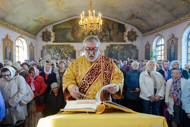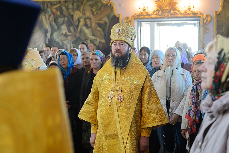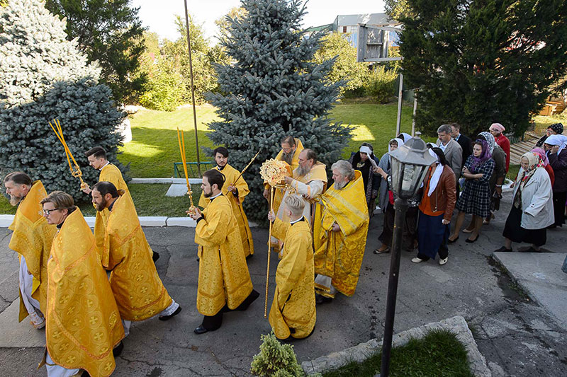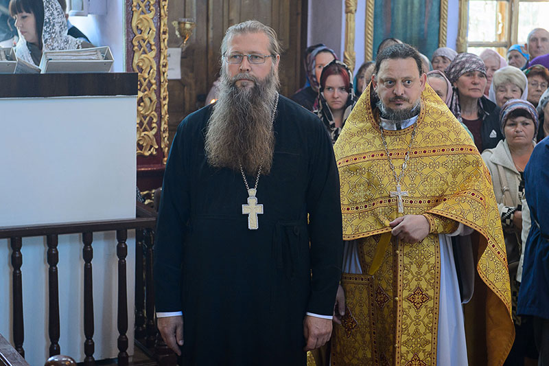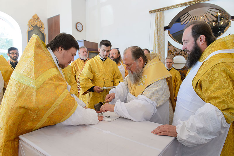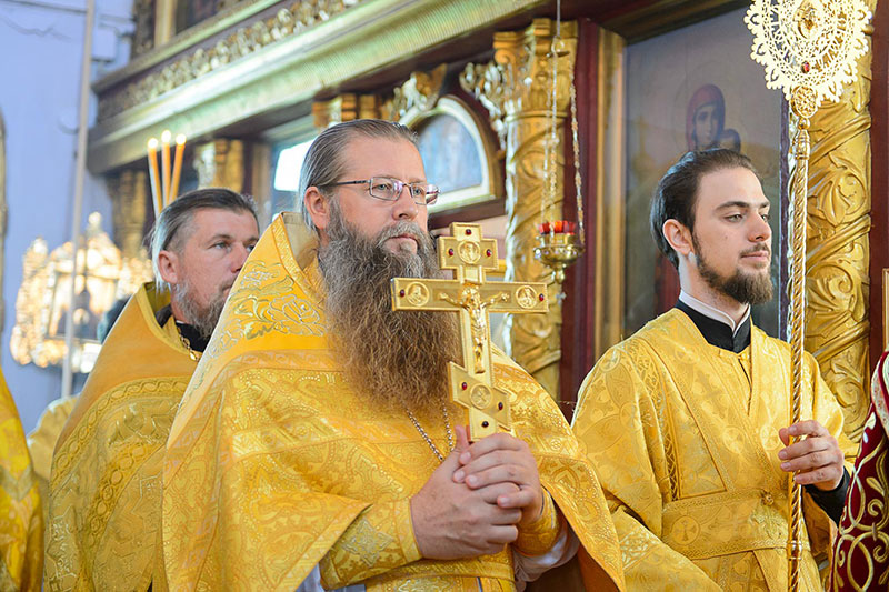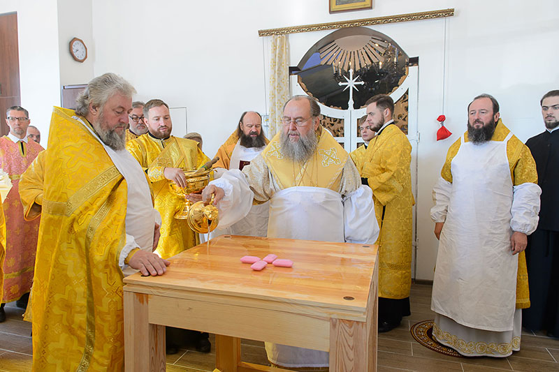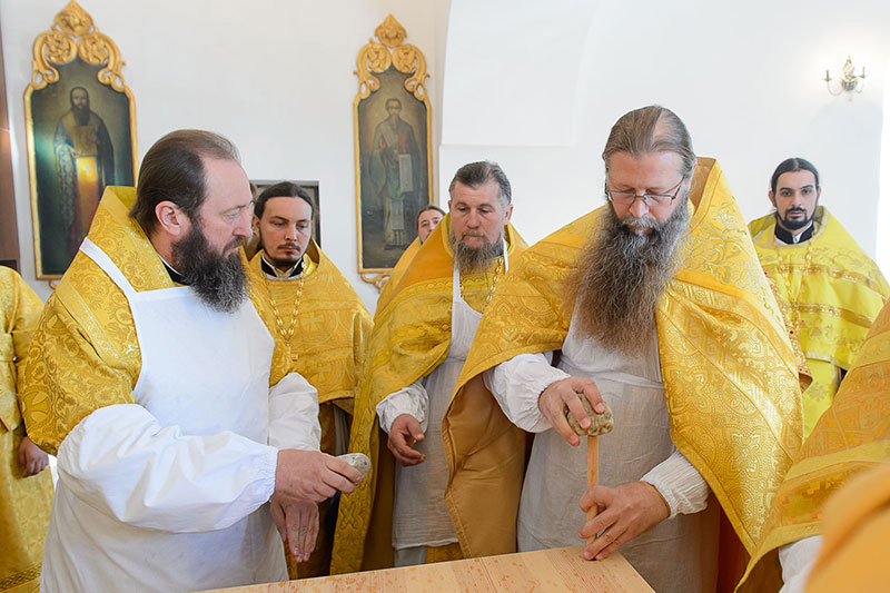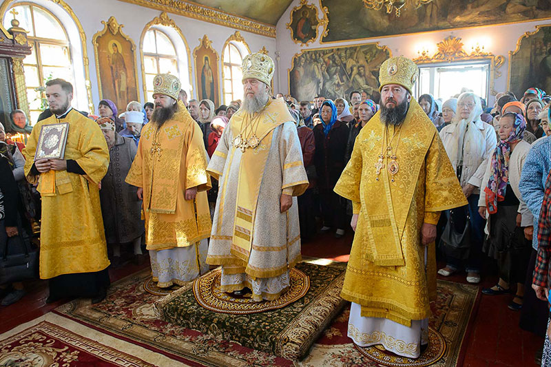 За богослужением великого освящения и Божественной Литургией Предстоятелю Православной Церкви Казахстана сослужили: викарий Астанайской епархии епископ Талдыкорганский Нектарий, епископ Усть-Каменогорский и Семипалатинский Амфилохий; настоятель храма в честь иконы Пресвятой Богородицы «Всех скорбящих радость» протоиерей Евгений Воробьев, благочинный Талдыкорганского церковного округа иеромонах Клавдиан (Поляков), ключарь Петропавловского храма Алма-Аты протоиерей Кирилл Шкляр, ключарь храма Веры, Надежды, Любови и Софии – Представительства Митрополичьего округа в Москве – иерей Сергий Неретин, помощник Главы Митрополичьего округа иерей Георгий Сидоров, духовенство Талдыкорганского благочиния, диаконский чин возглавил клирик Вознесенского кафедрального собора города Алма-Аты протодиакон Николай Гринкевич.