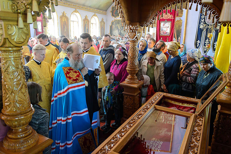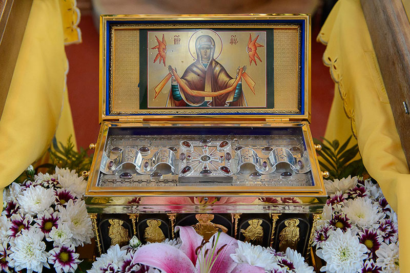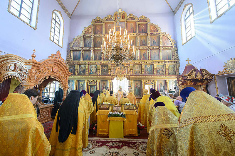 Для молитвенного поклонения и духовного укрепления верующих по благословению митрополита Александра в Талдыкорган из домового Иверско-Серафимовского храма Митрополичьей резиденции в Алма-Ате был доставлен ковчег с великой святыней Православия – частицей Пояса Пресвятой Богородицы.
