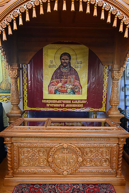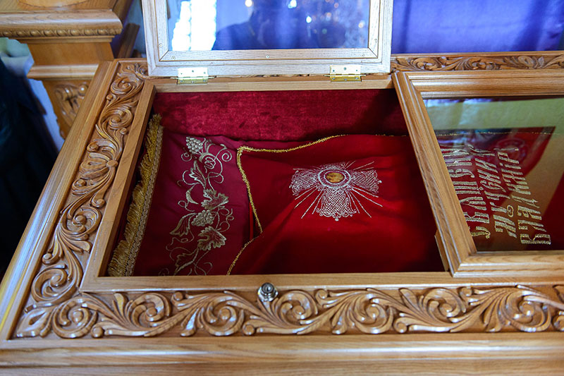 Вместе с освящением обновленного храма Глава Казахстанского Митрополичьего округа освятил новую раку для мощей небесного покровителя Талдыкоргана – священномученика протоиерея Владимира Лепсинского. Гробницу святого украсила величественная сень, искусно вырезанная из дерева, созданная на средства ктиторов Алма-Атинской епархии.