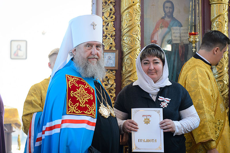 Во внимание к трудам по возрождению и укреплению церковно-певческих традиций регент хора благочиния Е.С. Спирченко была награждена орденом святых мучениц Веры, Надежды, Любови и Софии.