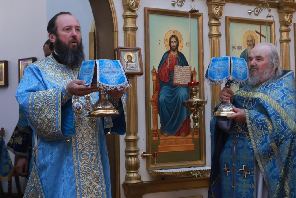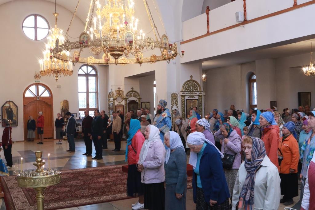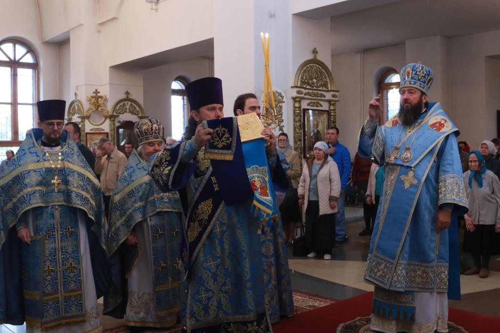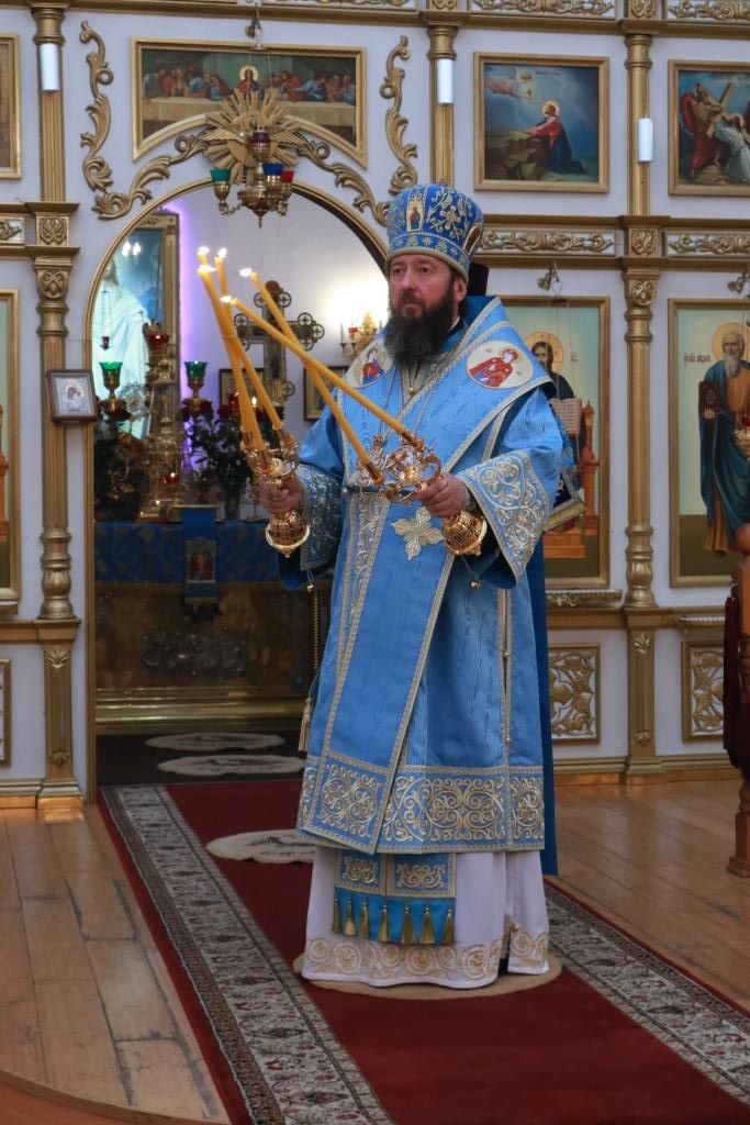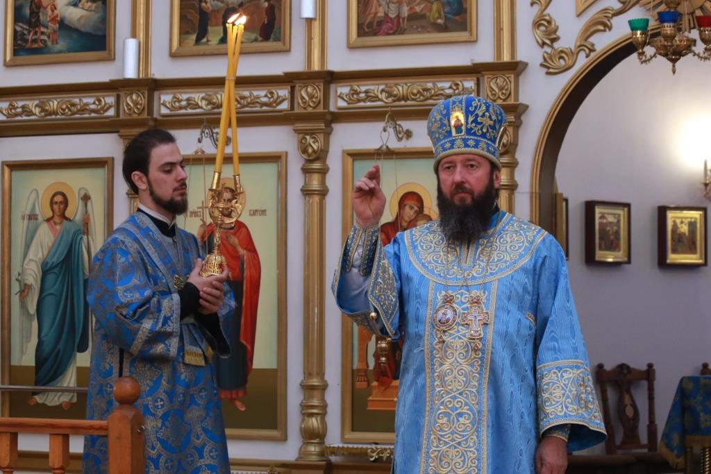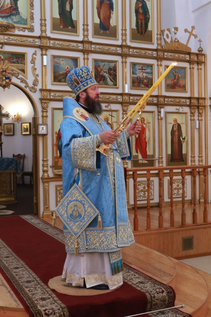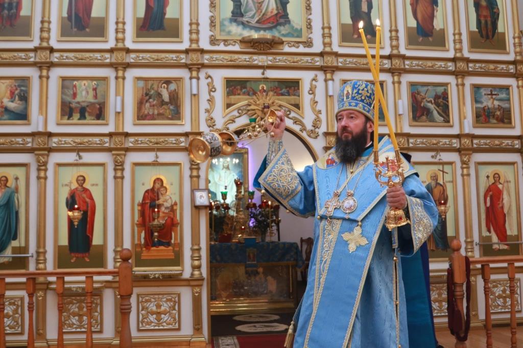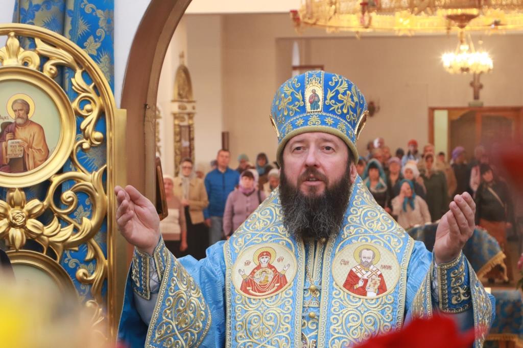 Божественная Литургия завершилась славлением Божией Матери, после которого епископ поздравил собравшихся с праздником и обратился к народу Божию со словами Архипастырского наставления.