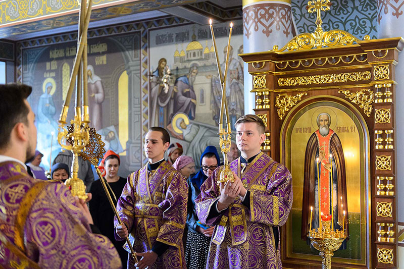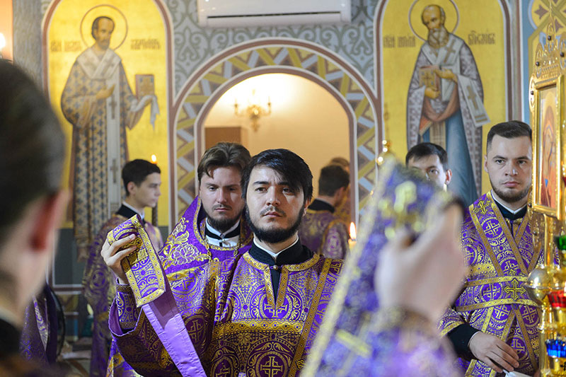 На сугубой ектении в соответствии с определением Священного Синода Русской Православной Церкви возглашались прошения о единстве Святого Православия.