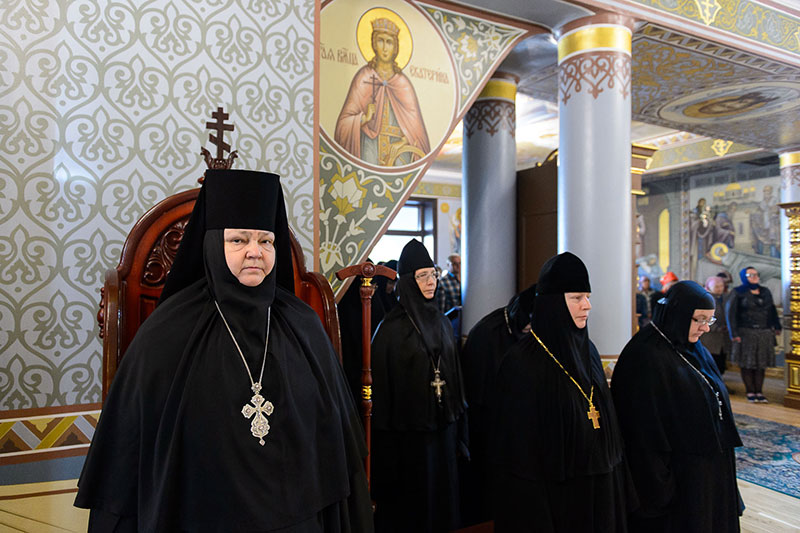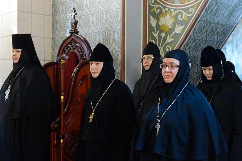 Также за богослужением вместе с настоятельницей Иверско-Серафимовского монастыря игуменией Любовию (Якушкиной) молились настоятельницы монашеских обителей, прибывшие на торжества: Зачатьевского ставропиагиального монастыря игумения Иулиания (Каледа) (Московская епархия), Кресто-Воздвиженского Иерусалимского ставропигиального монастыря игумения Екатерина (Чайникова) (Московская епархия), Марфо-Мариинского монастыря на святой горе Грабарке игумения Ермиония (Щур) (Польская Православная Церковь), Богородице-Рождественского монастыря в Белостоке игумения Анастасия (Харкевич) (Польская Православная Церковь), Спасо-Преображенского монастыря в городе Чебоксары игумения Сергия (Рузавина) (Чувашская митрополия), Успенского монастыря в городе Александров игумения Иоанна (Смуткина) (Александровская епархия), Свято-Троицкого Никольского монастыря в городе Ташкенте игумения Екатерина (Мальгина) (Ташкентская епархия), Свято-Тихвинского Богородицкого монастыря в городе Бузулук игумения Пантелеимона (Кривенкова) (Бузулукская епархия), Покровского монастыря в городе Уральске игумения Варвара (Морозова) (Уральская епархия), Знаменско-Абалацкого Петропавловского монастыря в городе Семипалатинске игумения Марионилла (Помельникова) (Усть-Каменогорская епархия).