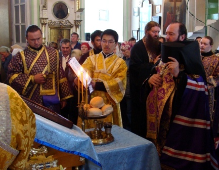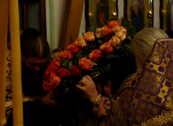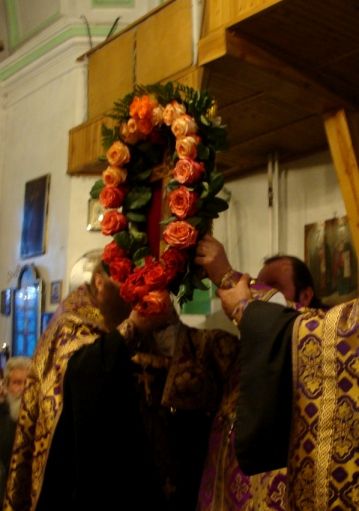 Во время этого пения все подходят и целуют Святой Крест, после чего Владыка помазывает всех освященным на литии этого праздника маслом и каждому дается кусочек хлеба, также освященного на литии этим вечером.