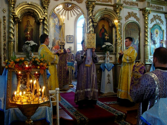В город Семипалатинск Преосвященнейший владыка Амфилохий прибыл ещё накануне, 25 сентября. И сегодня, 26 сентября, Глава Усть-Каменогорской и Семипалатинской епархии возглавил вечернее богослужение в Воскресенском соборе. Особенностью службы в этот праздник является трогательный богослужебный чин, который всегда совершается именно в день Воздвижения Креста Господня.