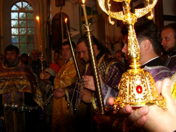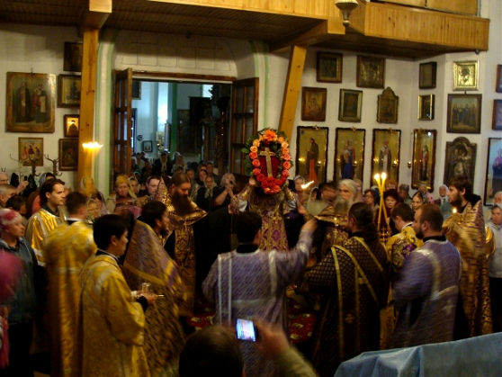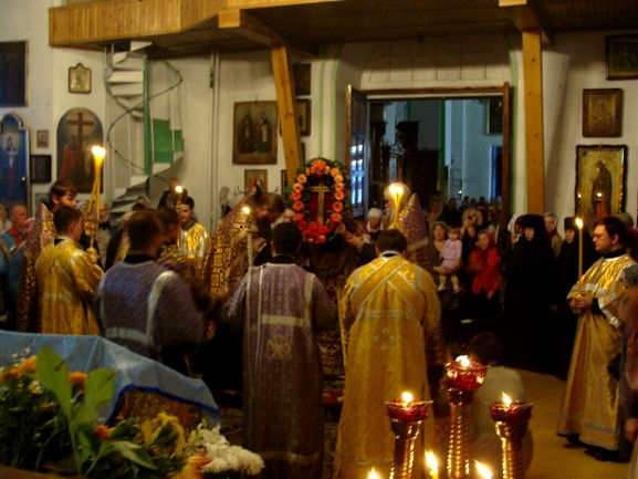 В храме в эти минуты царит особая атмосфера: каждый поставляется в этой суровой темноте на суд своей совести, остается с ней наедине, а голос покаянных строк то осуждает содеянное, то дает надежду. И особенно ощутимо то, что в эти мгновения Воздвижения Креста Господня над миром гремит большой город, безучастный к этому сокровенному торжеству, никак с ним не связанный, и миллионы людей продолжают жить повседневной жизнью, волнениями, интересами, радостями, горестями, никакого отношения к тому, что совершается в храмах, не имеющими.