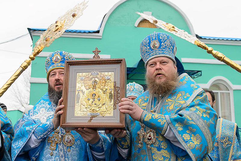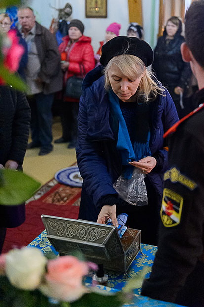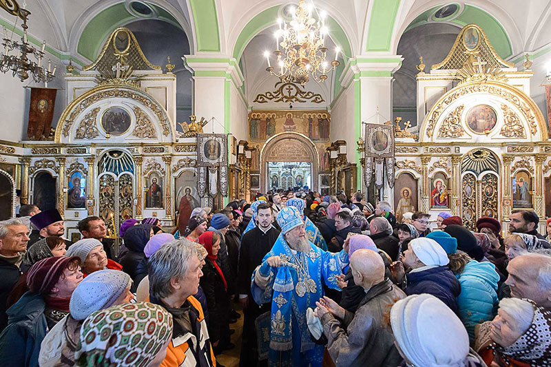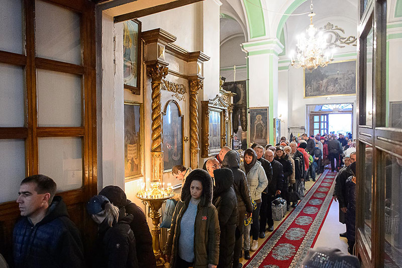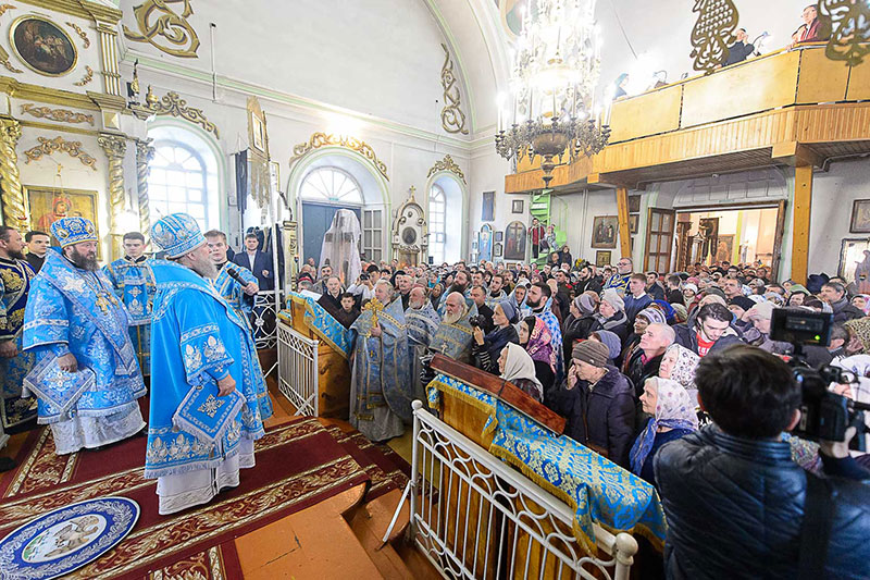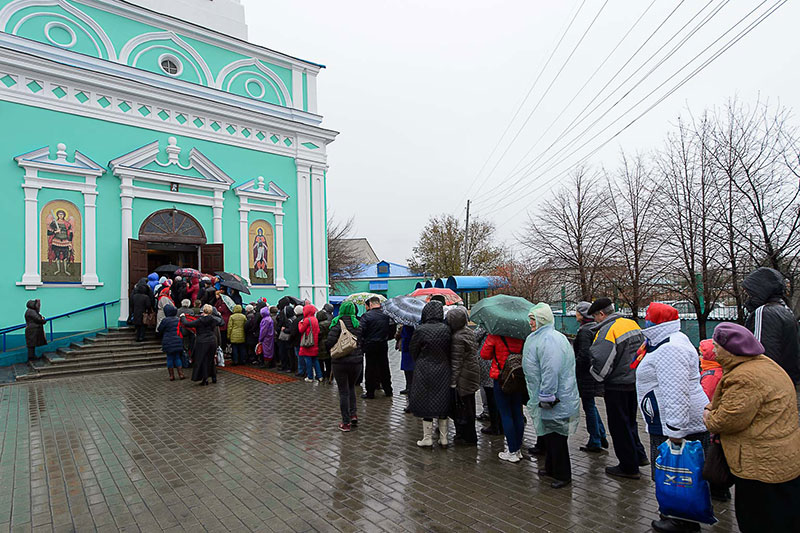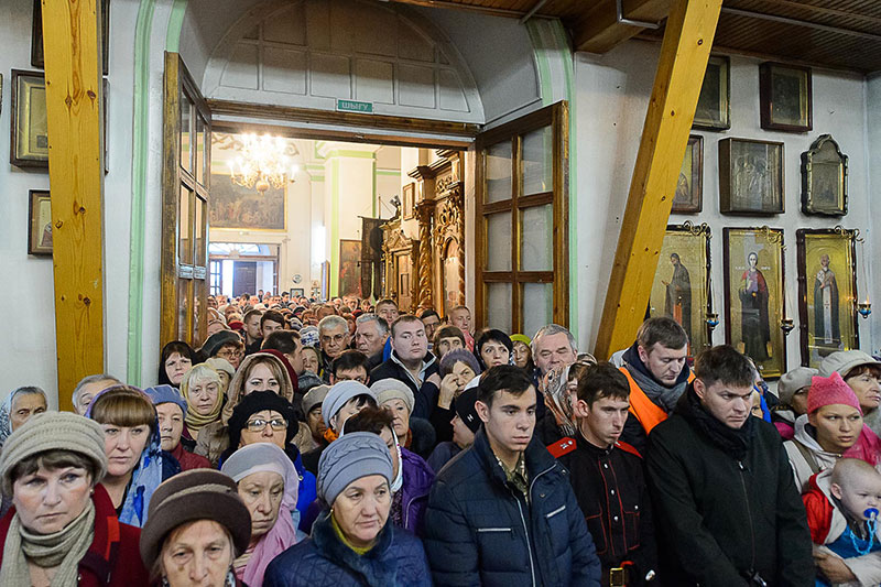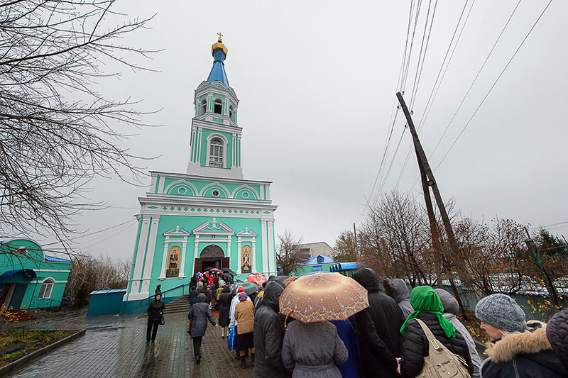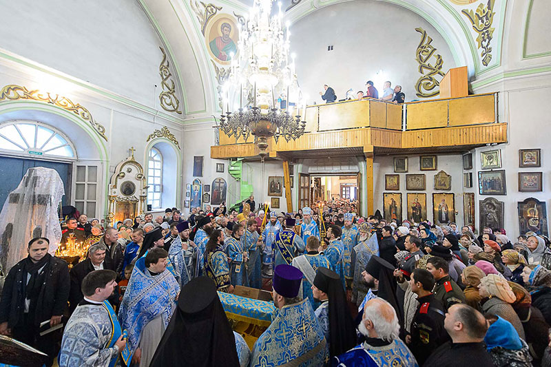 Несмотря на будний день и непогоду, тысячи верующих – жители города и паломники из населенных пунктов региона – прибыли на праздничное богослужение, желая прикоснуться к великим святыням Православия и получить духовное утешение и укрепление.