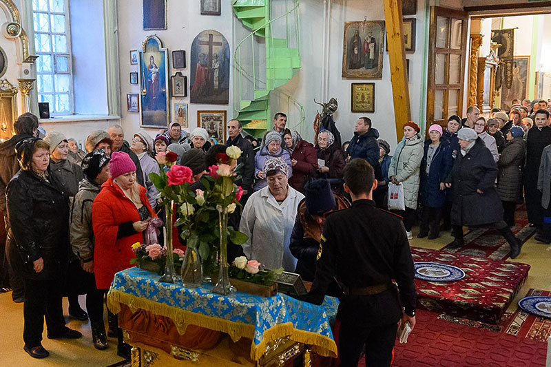 На заупокойной ектении совершались сугубые молитвы о почивших строителях и благоукрасителях Воскресенского кафедрального собора, возобновителях богослужебной жизни, усопших священнослужителях и прихожанах храма; о православных христианах «в годину лютых гонений от безбожников умученных и убиенных, от голода, холода, ран, болезней и непосильных работ скончавшихся».
