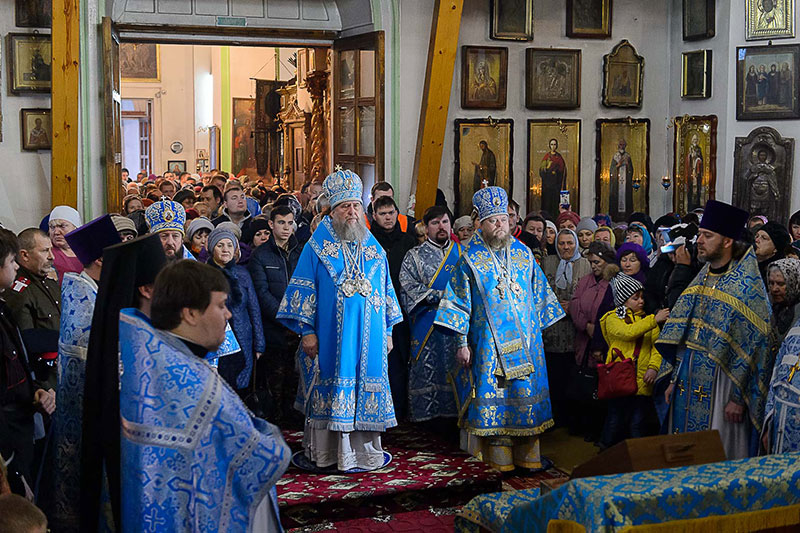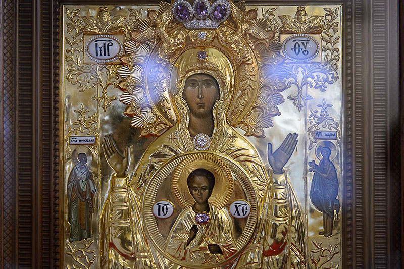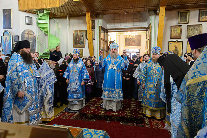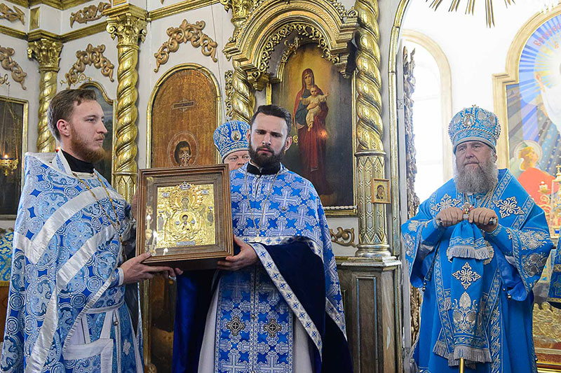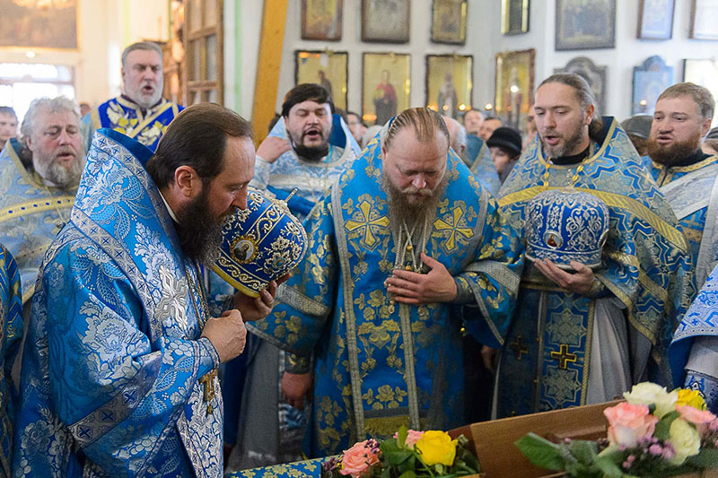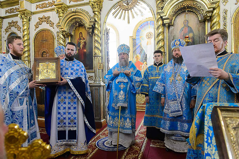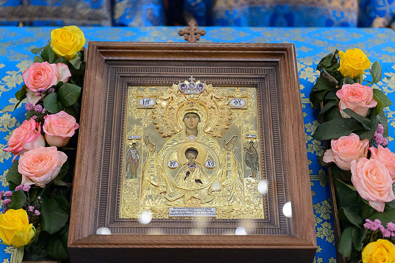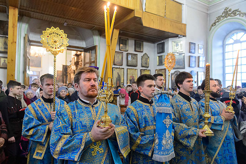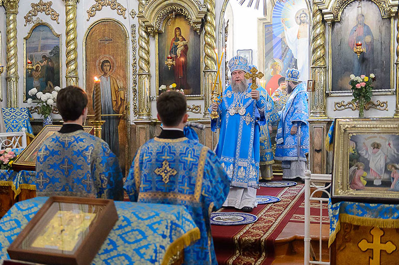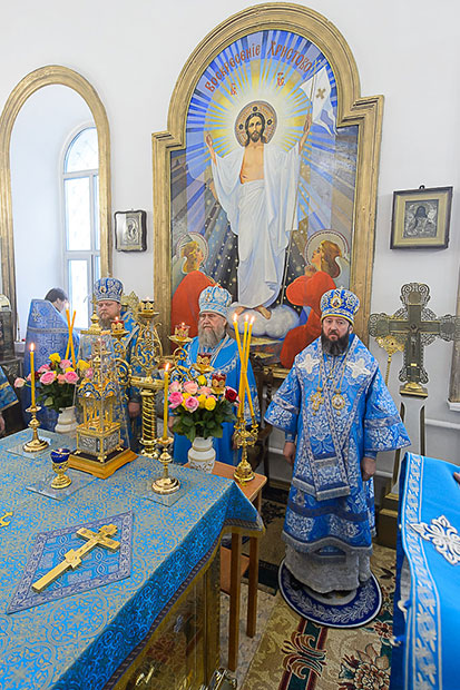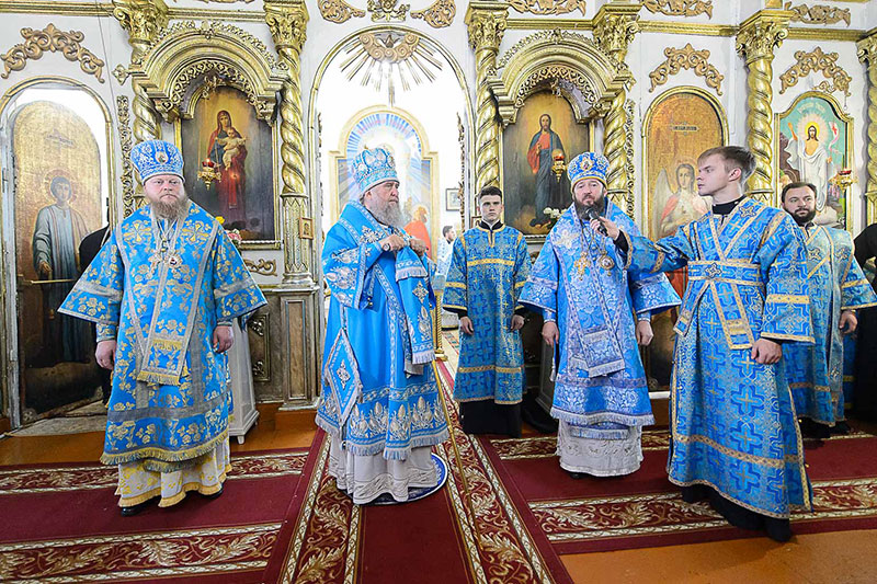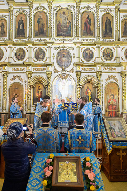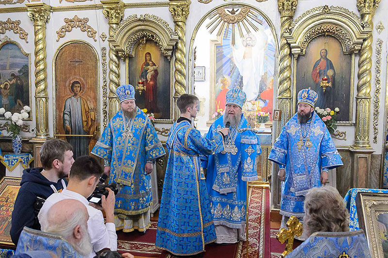 В завершение Литургии состоялось славление Пресвятой Богородице – духовенство и хор пропели тропарь, кондак и величание перед Абалацко-Знаменским образом Царицы Небесной. Участники богослужения также исполнили запевы святителю Николаю Чудотворцу, священномученику Александру Семипалатинскому и новомученикам и исповедникам Казахстанским.