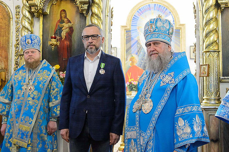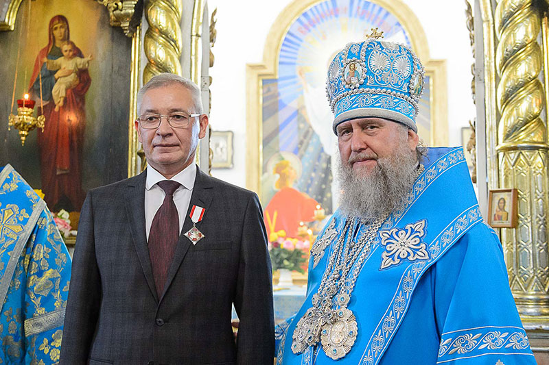 Во внимание к трудам по укреплению отношений между Генеральным консульством Российской Федерации в городе Усть-Каменогорске и Усть-Каменогорской епархией генеральный консул Российской Федерации М.Ю. Кололев удостоен высокой награды Казахстанского Митрополичьего округа – ордена священномученика Пимена Верненского.