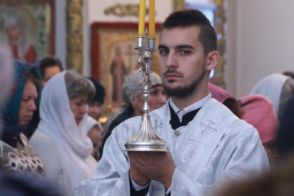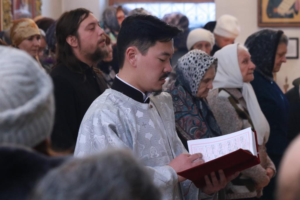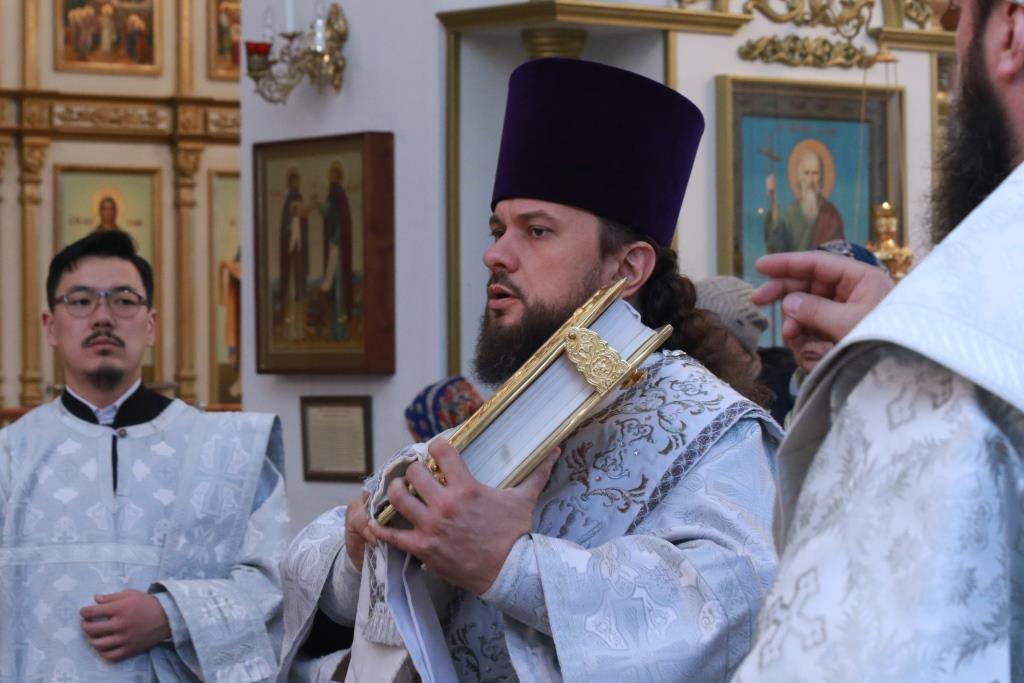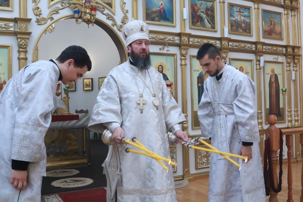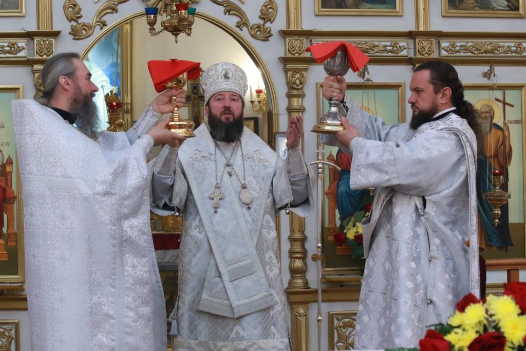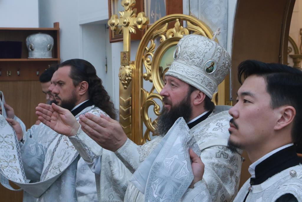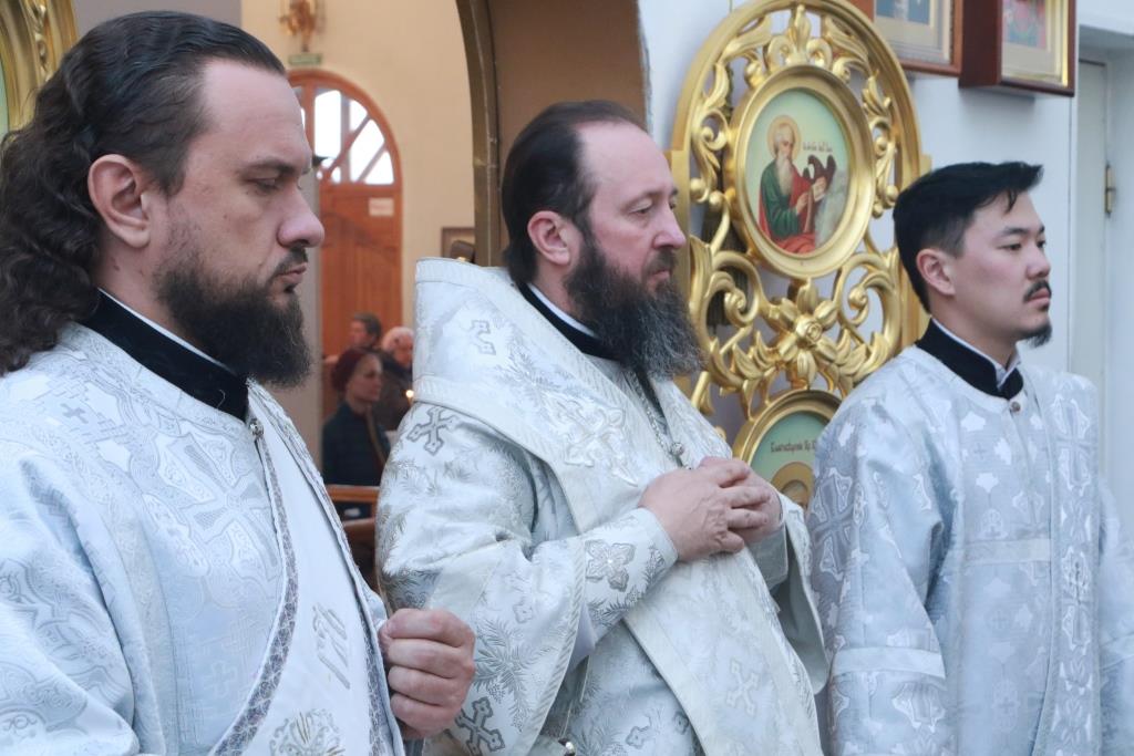Владыке епископу сослужили: духовник епархии архимандрит Спиридон (Теплухин), ключарь кафедрального собора иеромонах Никодим (Авдеев), заведующий канцелярией епархии иерей Константин Дьяков, секретарь епархии диакон Илия Кван, протодиакон Андрей Дудник, диакон Владимир Лаврешин.