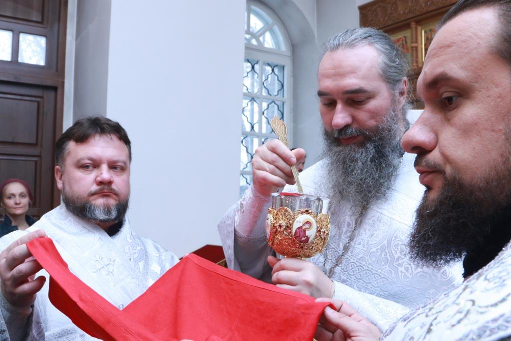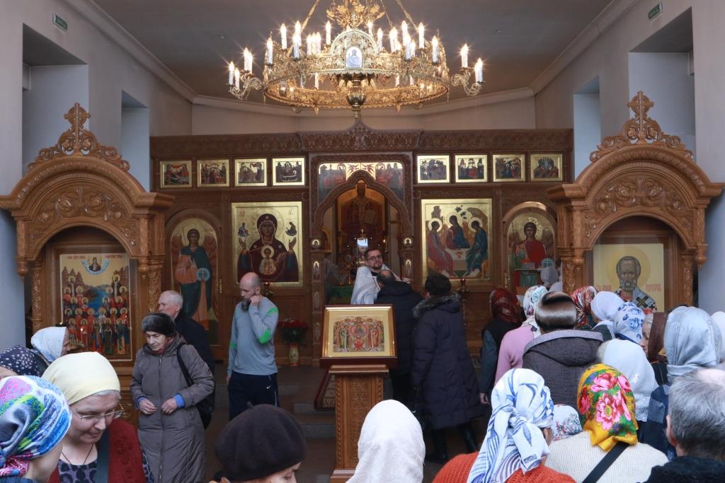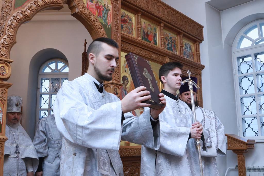 Песнопения Божественной Литургии исполнял хор кафедрального соборного храма под управлением регента В. Федоровой. За воскресным богослужением молились насельники Свято-Троицкого мужского монастыря и прихожане монастырского храма. Перед причастием мирян проповедовал иерей Константин Дьяков.