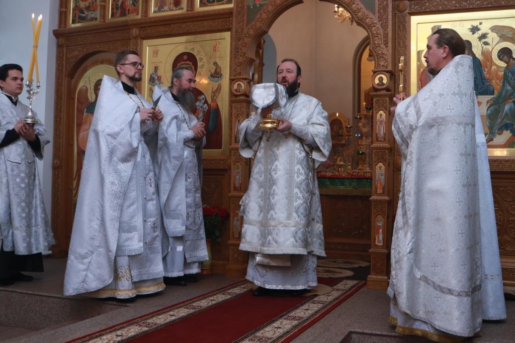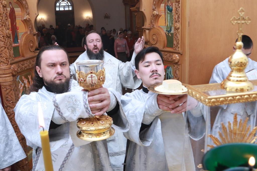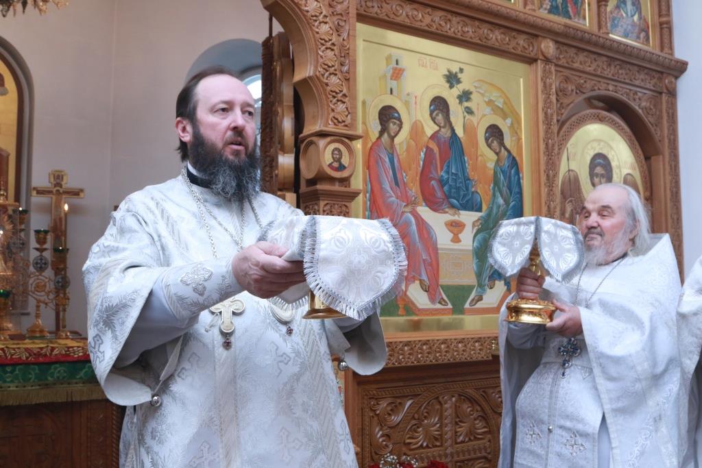 Управляющий Усть-Каменогорской и Семипалатинской епархией Преосвященнейший епископ Амфилохий возглавил служение Божественной Литургии святителя Иоанна Златоуста в Троицком соборе Усть-Каменогорского Свято-Троицкого мужского монастыря. Архипастырю сослужили: духовник епархии архимандрит Спиридон (Теплухин), ключарь кафедрального собора иеромонах Никодим (Авдеев), клирики Андреевского кафедрального собора иерей Алексий Клепиков и иерей Константин Дьяков, секретарь епархии диакон Илия Кван, протодиакон Андрей Дудник, диакон Владимир Лаврешин.