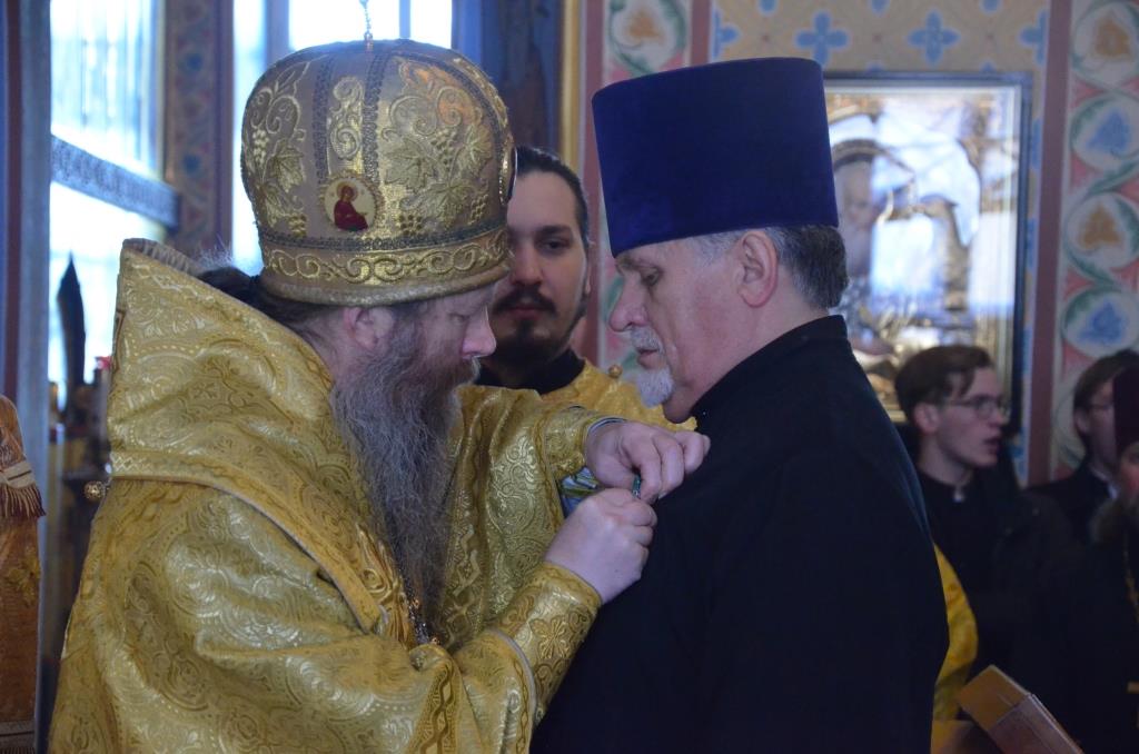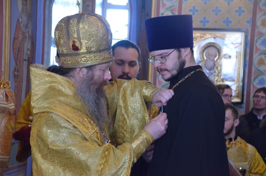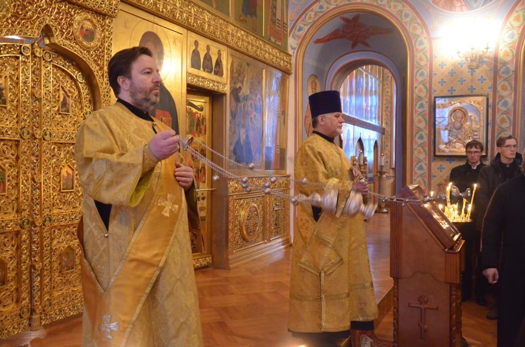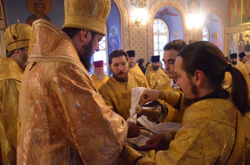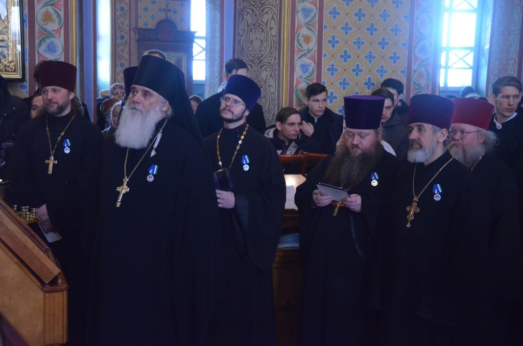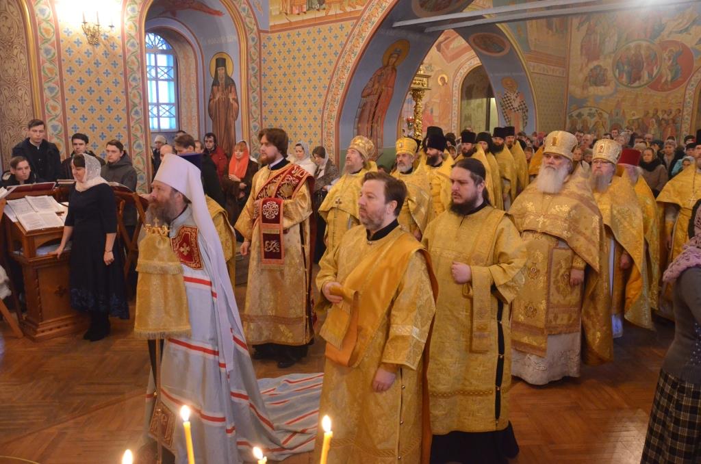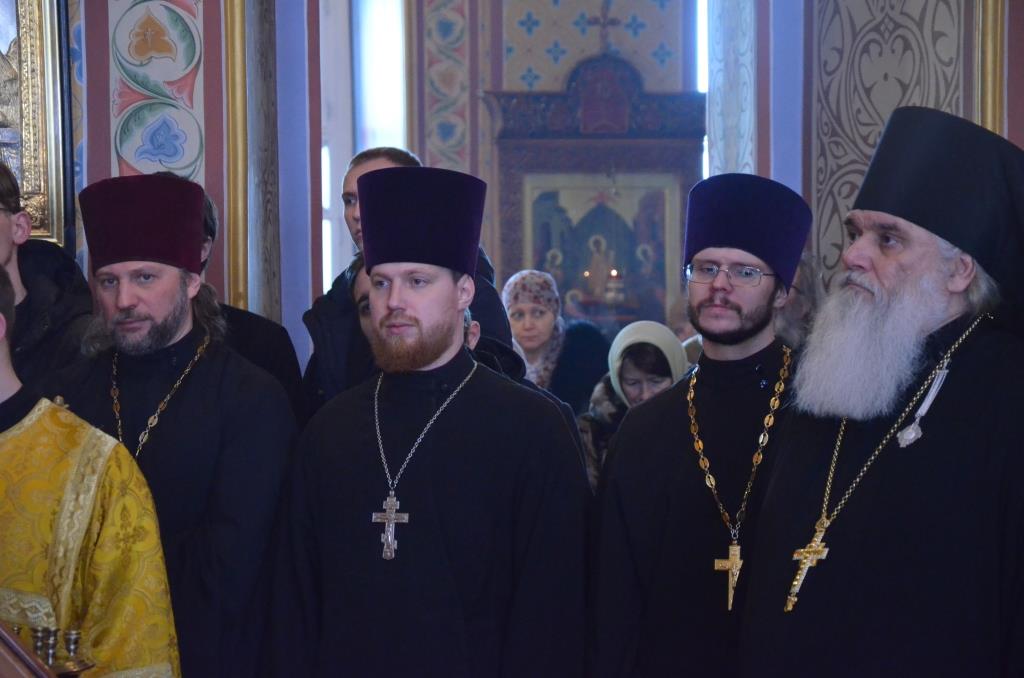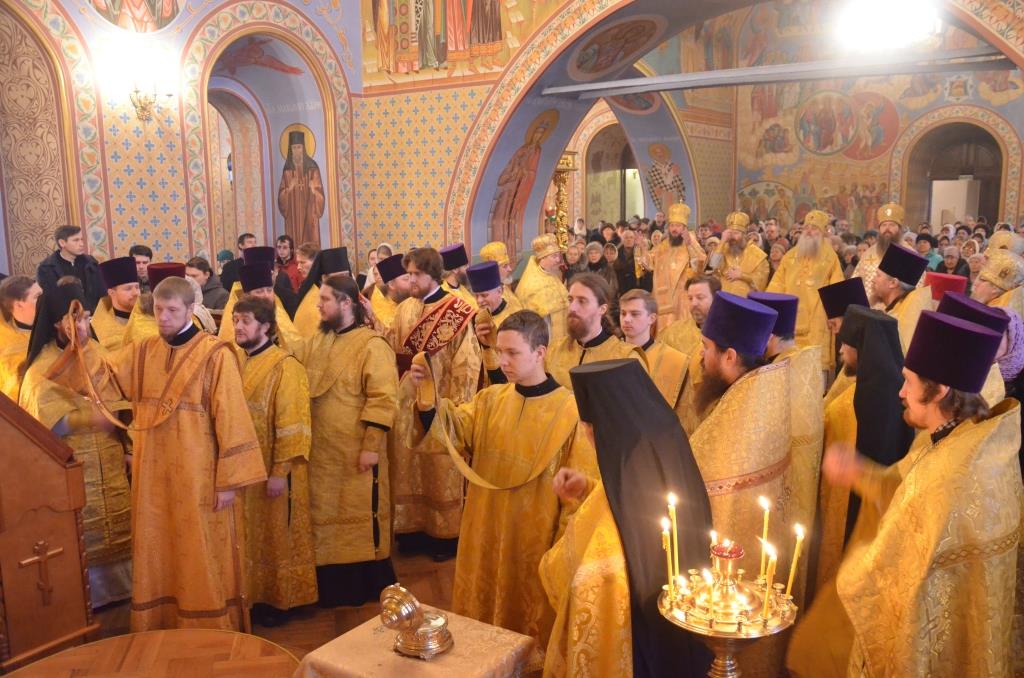 Архипастырям сослужили: секретарь Томской епархии архимандрит Иосиф (Ерёменко), председатель Отдела образования и просвещения Новосибирской митрополии протоиерей Борис Пивоваров, наместник Богородице-Алексиевского игумен монастыря Кирилл (Умрилов), преподаватели семинарии в священном сане и духовенство Томской митрополии.