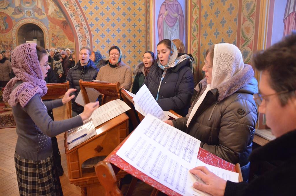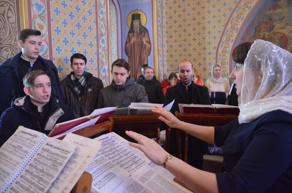 За богослужением исполняли песнопения архиерейский смешанный хор под управлением регента Лекаревич Т.И., и хор пастырского отделения Томской духовной семинарии под управлением Баёвой М. А.