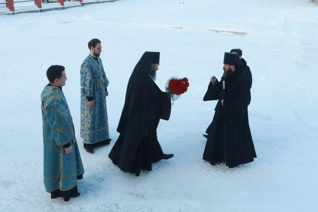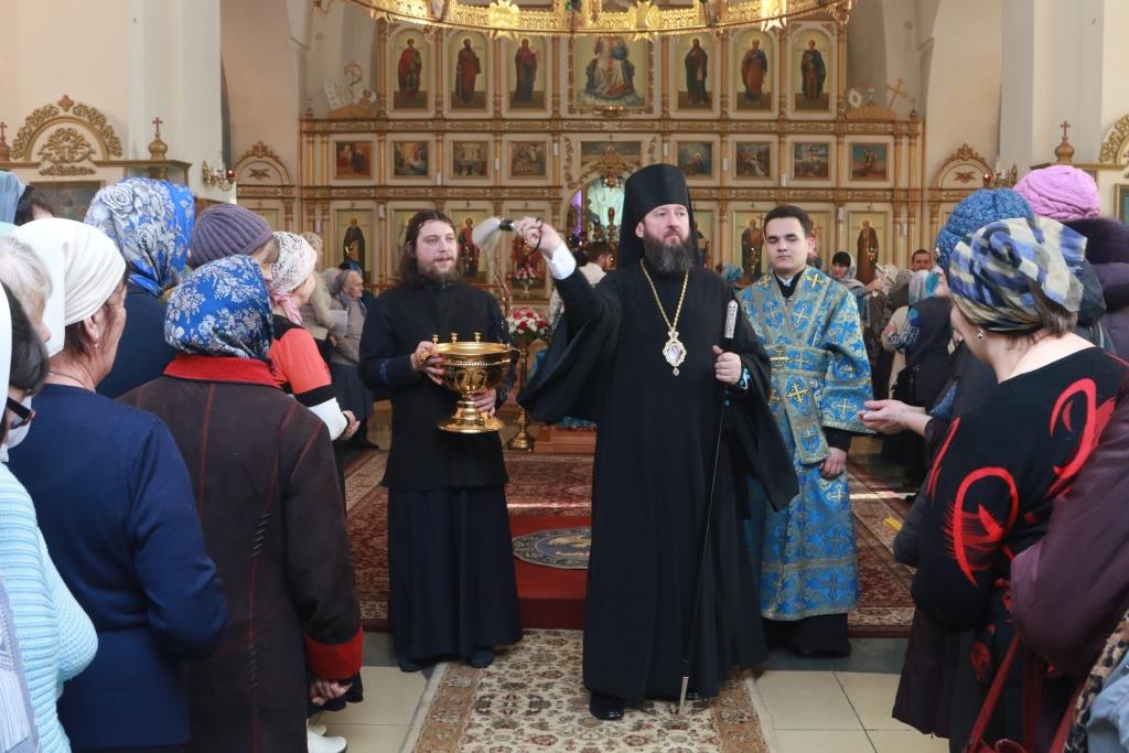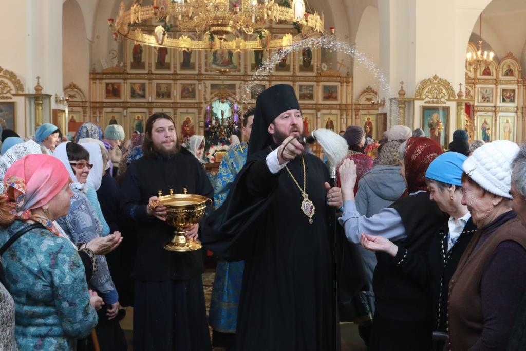 В завершение праздничного богослужения Преосвященнейший Архипастырь преподал молящимся Божие благословение и окропил собравшихся святой водой.