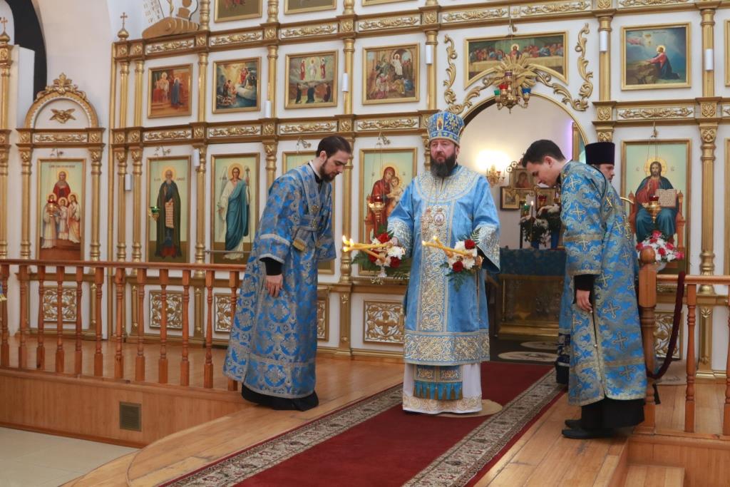 В праздничный день епископ Усть-Каменогорский и Семипалатинский Амфилохий возглавил служение Божественной Литургии святителя Иоанна Златоуста в Свято-Андреевском кафедральном соборе Усть-Каменогорска. Архипастырю сослужили: духовник епархии архимандрит Спиридон (Теплухин), ключарь кафедрального собора иеромонах Никодим (Авдеев), клирики храма иерей Алексий Клепиков, иерей Константин Дьяков, секретарь епархии диакон Илия Кван, протодиакон Андрей Дудник.