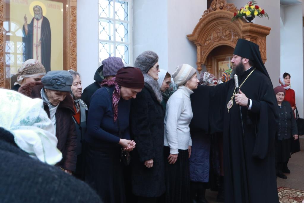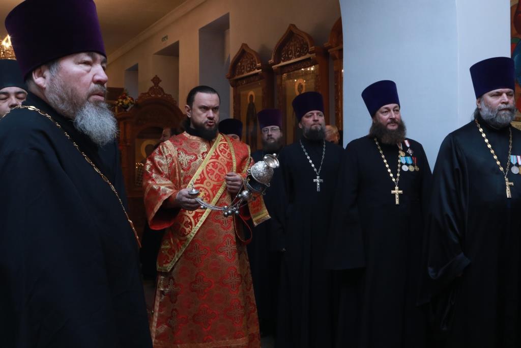 За Богослужением молились настоятели и клирики приходов, прибывшие на ежегодное епархиальное собрание, сотрудники епархиального управления, насельники и послушники Свято-Троицкого мужского монастыря и прихожане.