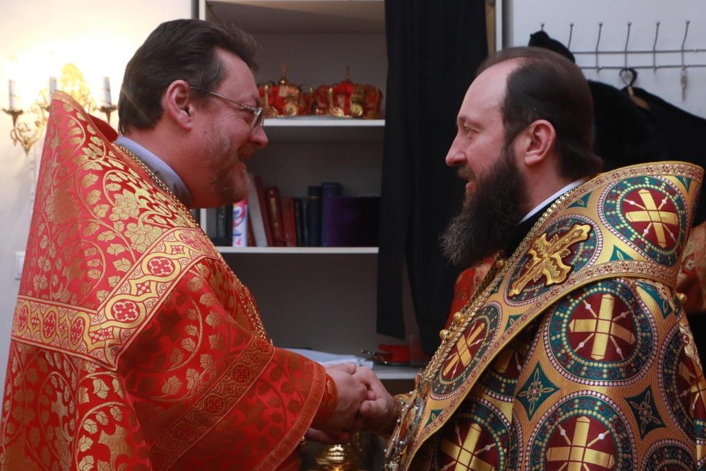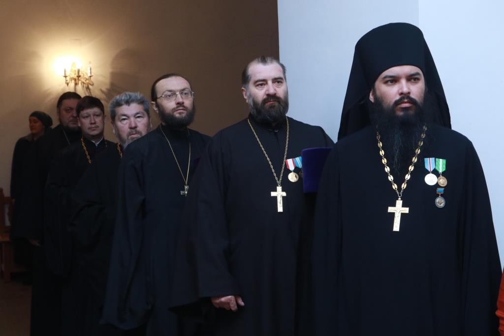В завершение проповеди Преосвященнейший Владыка поздравил иеромонаха Иустина (Ларионова) с 28-летием хиротонии в сан пресвитера. После окончания праздничного Богослужения в здании Духовно-административного корпуса началась работа ежегодного епархиального собрания духовенства Усть-Каменогорской и Семипалатинской епархии.