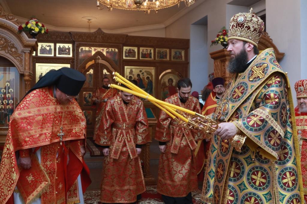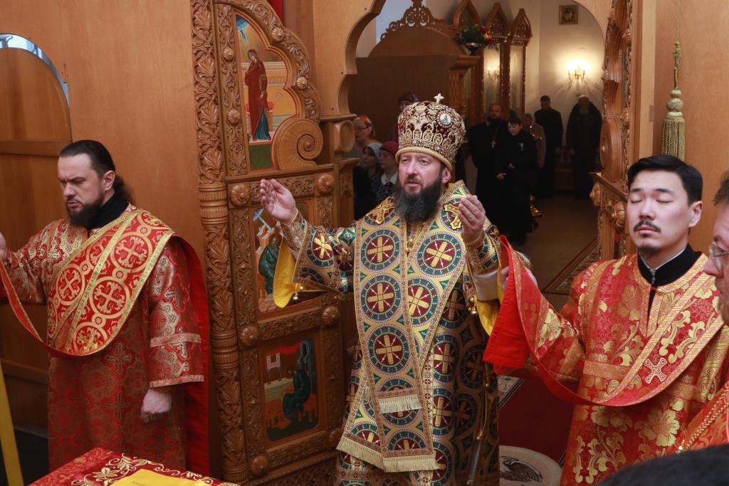 Преосвященнейший епископ Усть-Каменогорский и Семипалатинский Амфилохий возглавил служение Божественной Литургии святителя Иоанна Златоуста в Свято-Троицком крепостном соборе города Усть-Каменогорска. Архипастырю сослужили: духовник епархии архимандрит Спиридон (Теплухин), благочинный Усть-Каменогорского церковного округа иерей Алексий Анищенко, клирик Свято-Покровского храма Усть-Каменогорска иеромонах Иустин (Ларионов), настоятель Свято-Зиновьевского храма Усть-Каменогорска иерей Вячеслав Гутов, клирик Андреевского кафедрального собора иерей Константин Дьяков, секретарь епархии диакон Илия Кван, протодиакон Андрей Дудник.