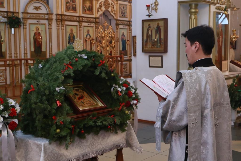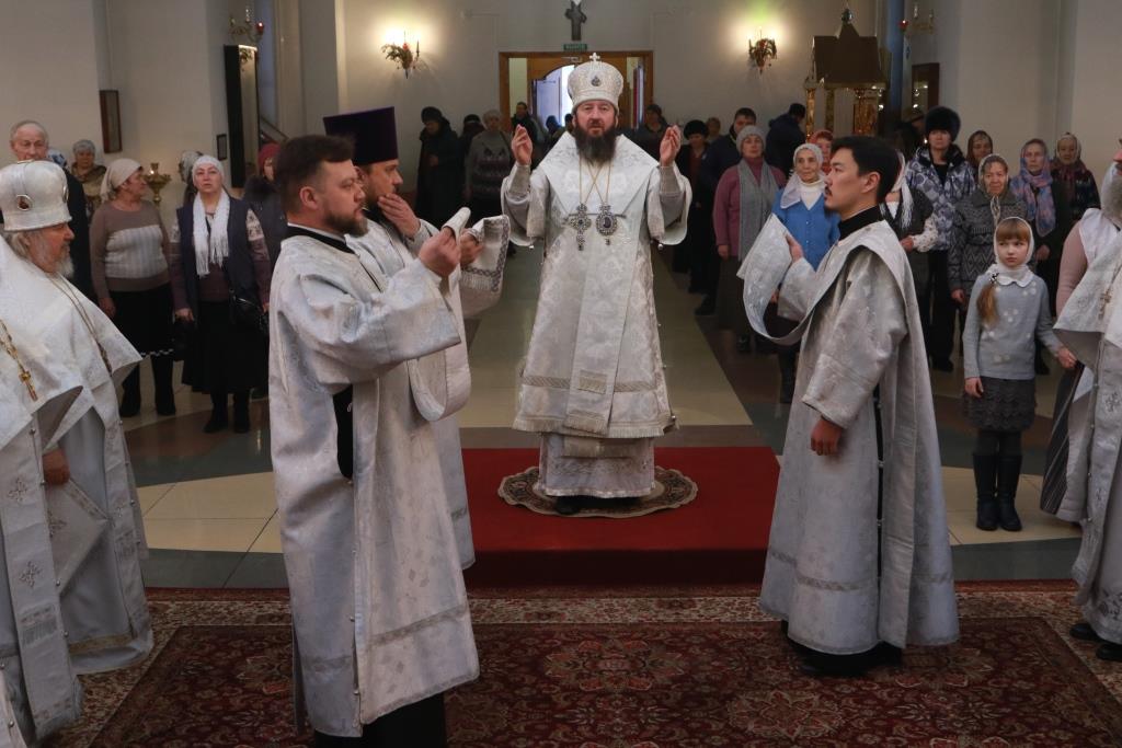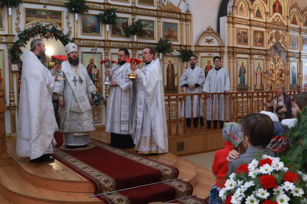 Преосвященнейший епископ Усть-Каменогорский и Семипалатинский Амфилохий возглавил служение особенных уставных чинопоследований Навечерия Рождества Христова – Божественной Литургии святителя Иоанна Златоуста и великой вечерни в кафедральном соборном храме во имя святого апостола Андрея Первозванного города Усть-Каменогорска.