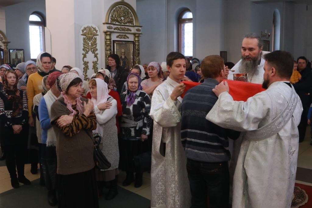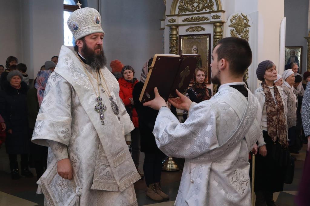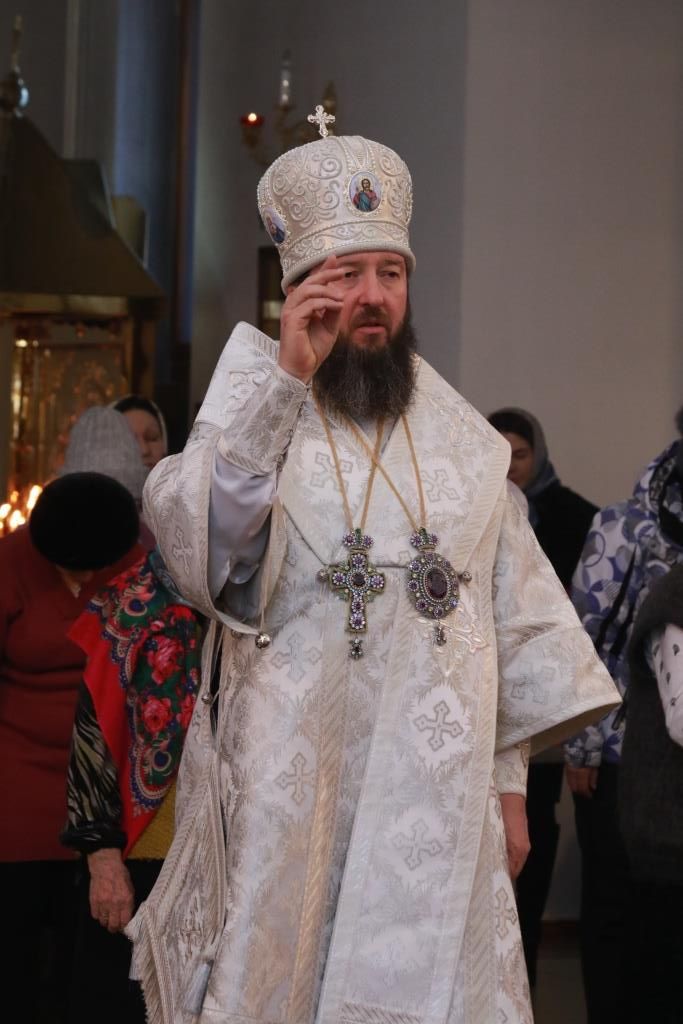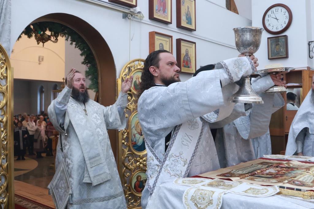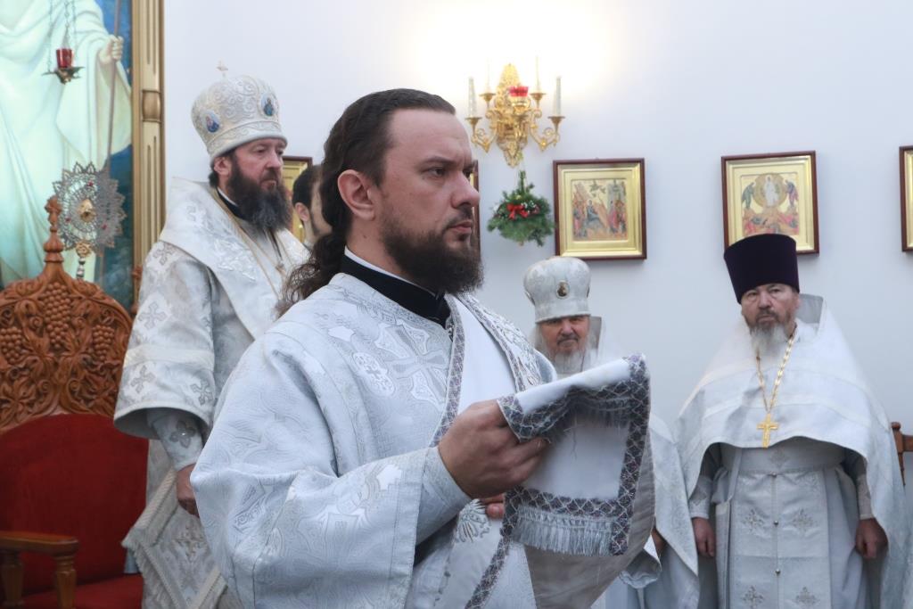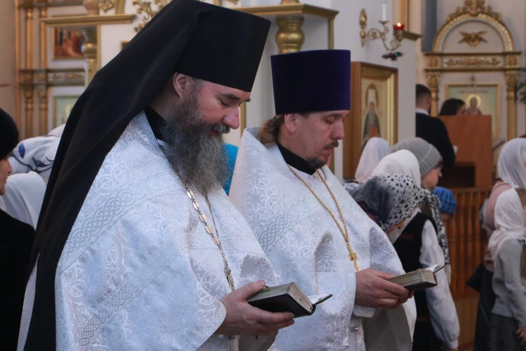 Его Преосвященству сослужили: духовник епархии архимандрит Спиридон (Теплухин), ключарь кафедрального собора иеромонах Никодим (Авдеев), протоиерей Николай Темирбаев, клирик храма иерей Алексий Клепиков, секретарь епархии диакон Илия Кван, протодиакон Андрей Дудник, диакон Владимир Лаврешин.