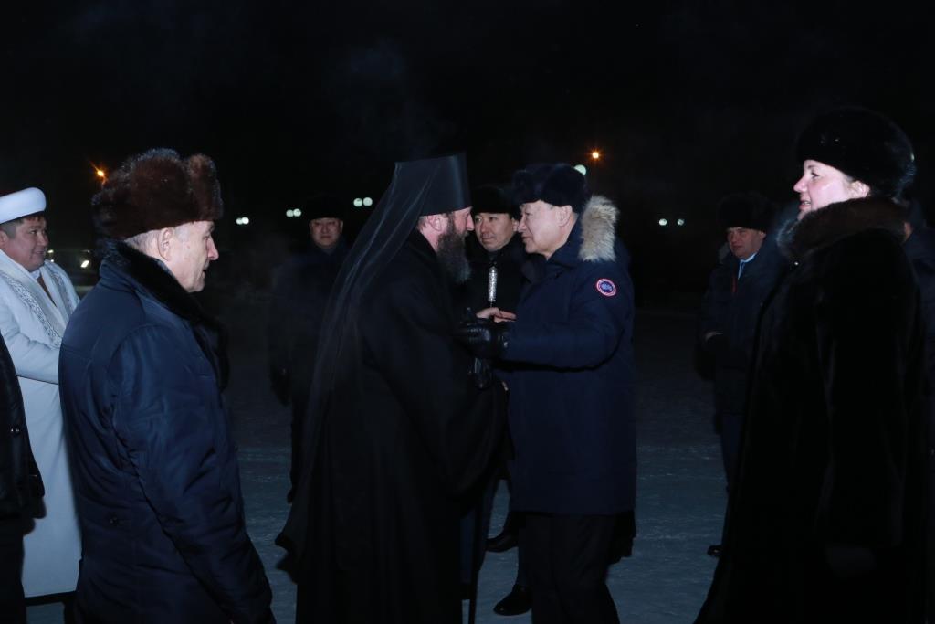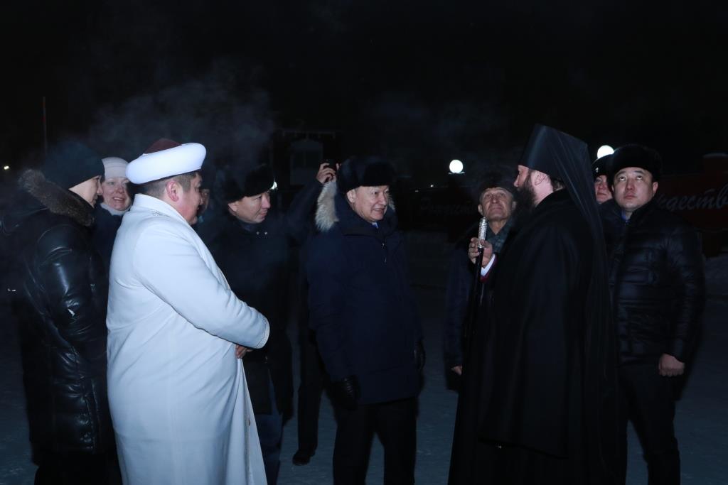 Епископ Амфилохий вручил руководителю области и сопровождавшим его лицам Рождественские послания Святейшего Патриарха Московского и всея Руси Кирилла и митрополита Астанайского и Казахстанского Александра. Высокие гости возжгли свечи за мир и процветание Казахстана.