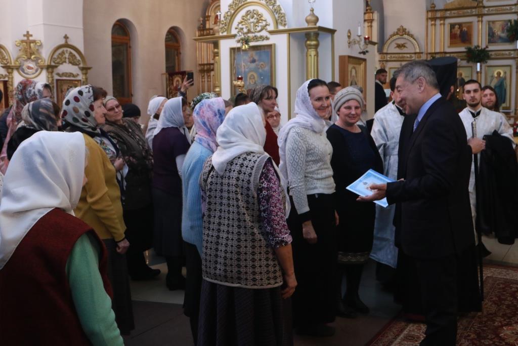 Перед началом Божественной Литургии Андреевский кафедральный собор посетил аким Восточно-Казахстанской области Д.К. Ахметов. Господина Ахметова сопровождали секретарь Восточно-Казахстанского областного маслихата В.М. Головатюк, градоначальник областного центра Ж.М. Омар, заместитель акима Усть-Каменогорска О.А. Булавкина, главный имам ВКО Ермек Мукатай, сотрудники акиматов Восточно-Казахстанской области и города Усть-Каменогорска.