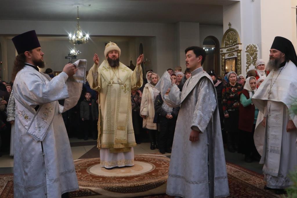 Празднование Рождества Христова в главном храме Рудного Алтая началось со служения Всенощного бдения, которое состояло из Великого повечерия, литии и утрени. В праздничную ночь епископ Усть-Каменогорский и Семипалатинский Амфилохий возглавил служение Божественной Литургии святителя Василия Великого.