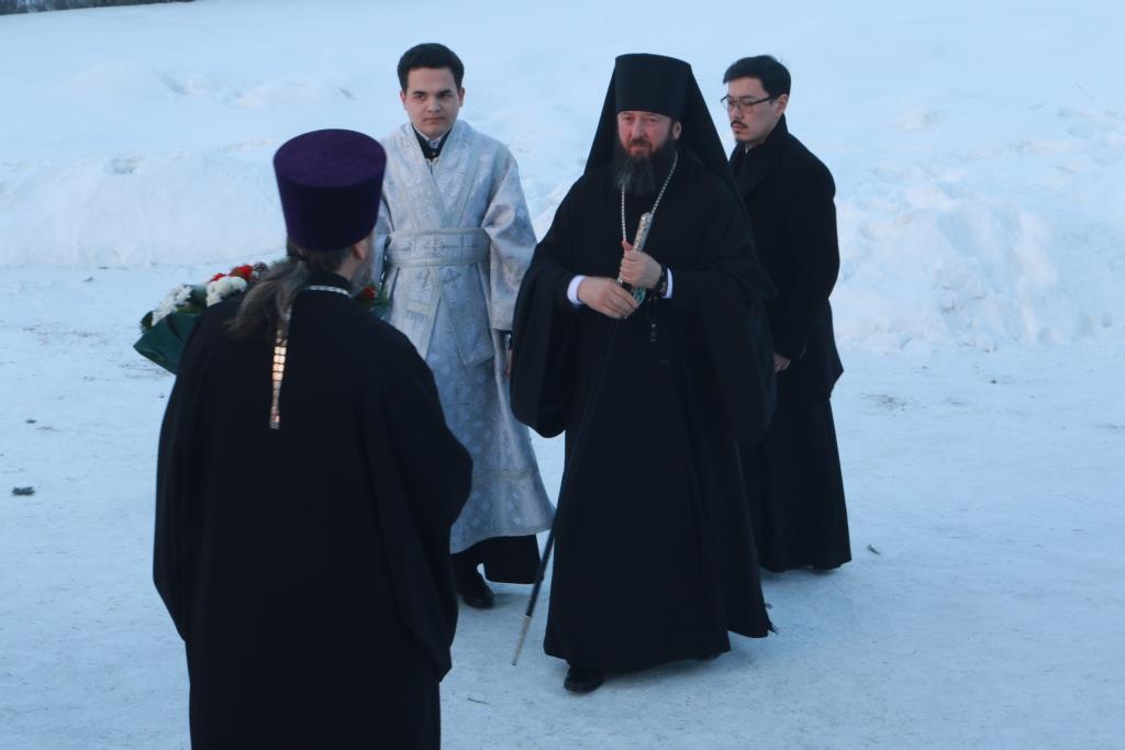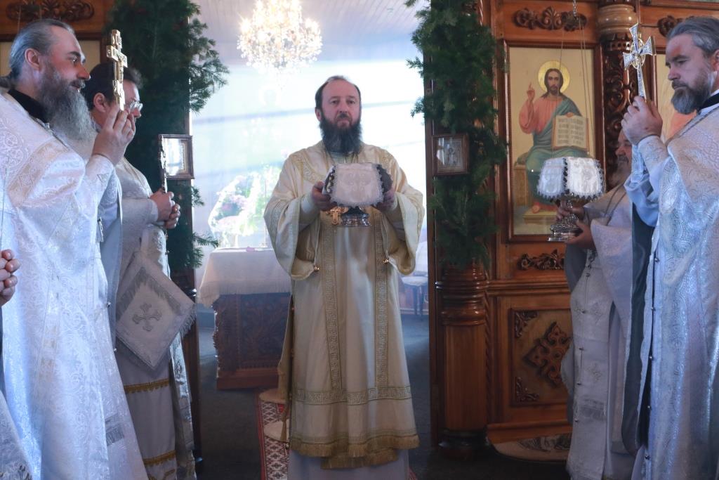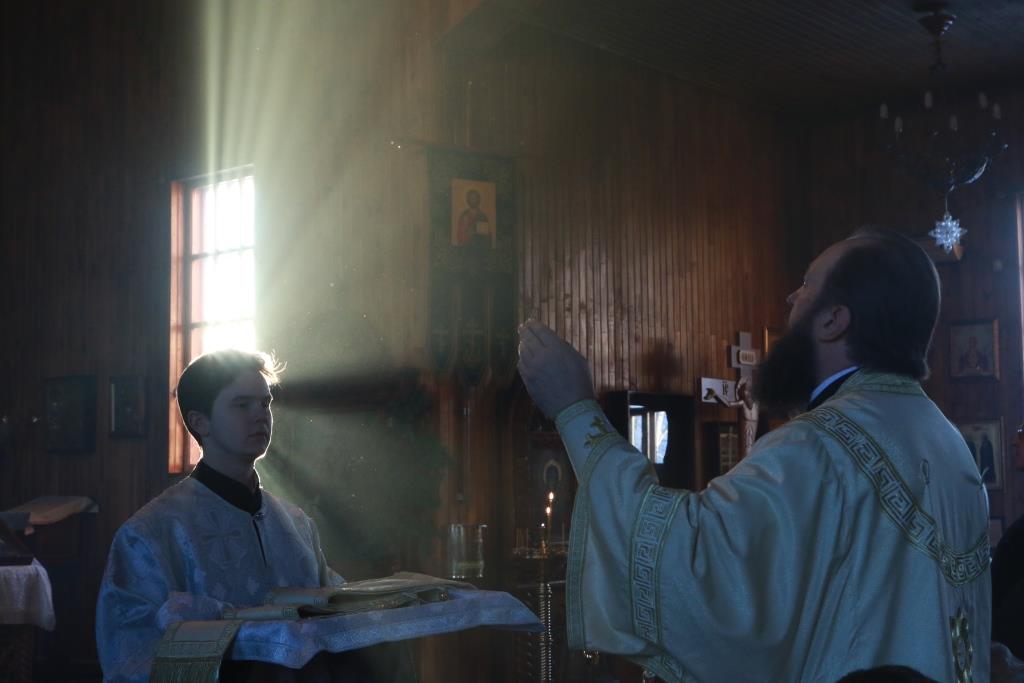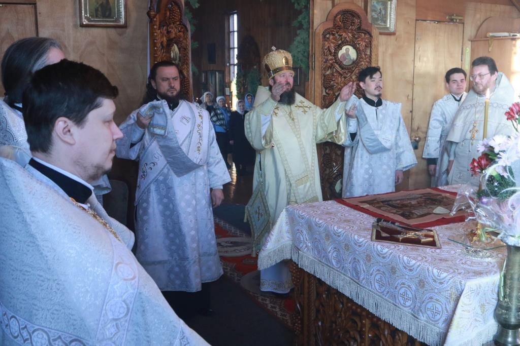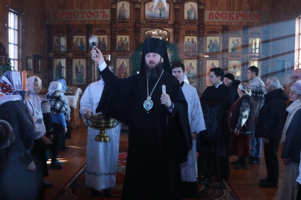 После проповеди Преосвященнейший Владыка призвал на прихожан Божие благословение и окропил молящихся святой водой. Богослужение завершилось братской трапезой.