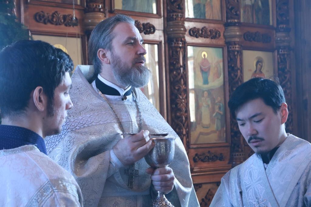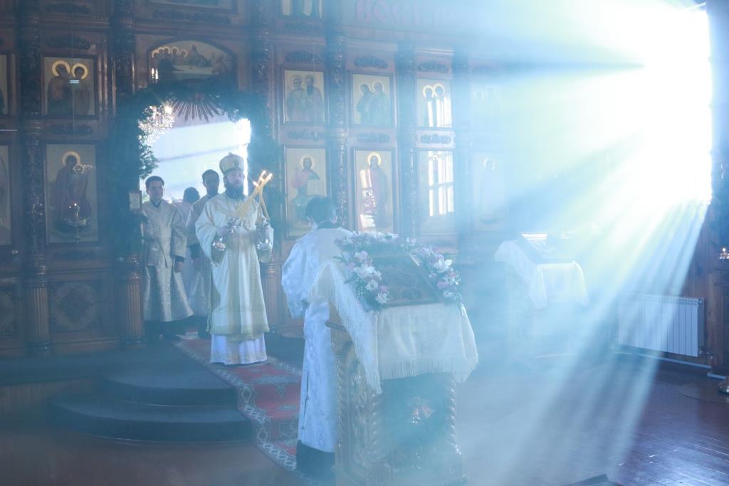Преосвященнейший епископ Усть-Каменогорский и Семипалатинский Амфилохий возглавил служение Божественной Литургии святителя Иоанна Златоуста в Покровском храме города Усть-Каменогорска. Владыке епископу сослужили: духовник епархии архимандрит Спиридон (Теплухин), благочинный Усть-Каменогорского церковного округа, настоятель Покровского храма иерей Алексий Анищенко, ключарь Андреевского кафедрального собора иеромонах Никодим (Авдеев), клирики храма иеромонах Иустин (Ларионов) и иерей Роман Подрезов, секретарь епархии диакон Илия Кван, протодиакон Андрей Дудник, диакон Александр Якушев.