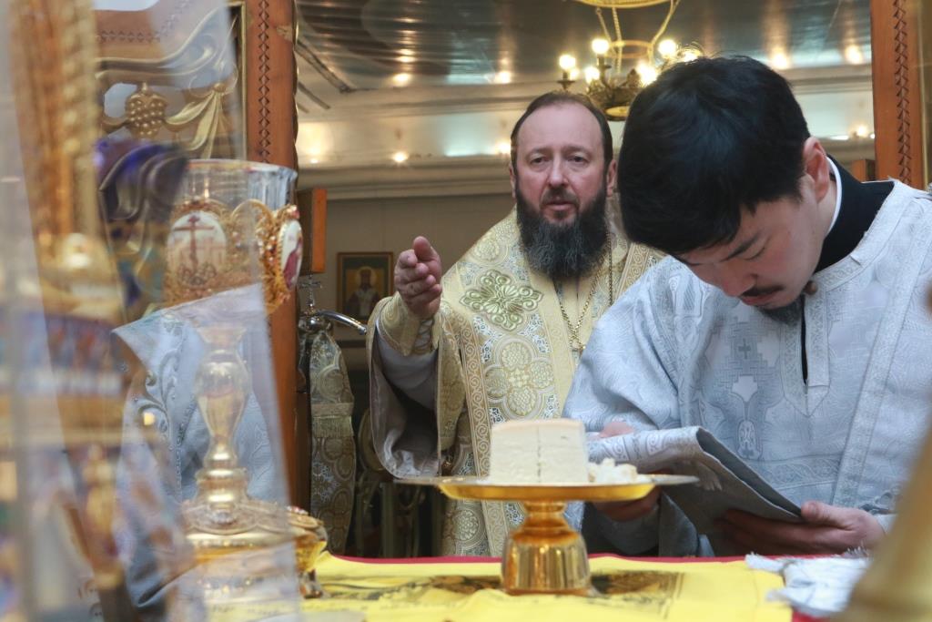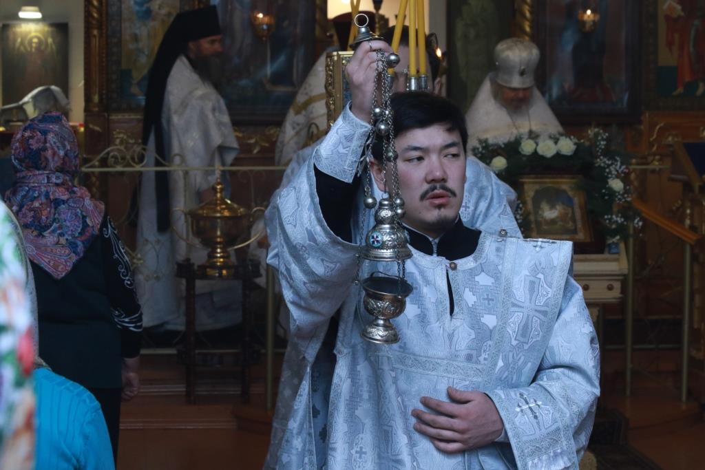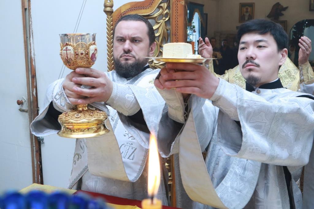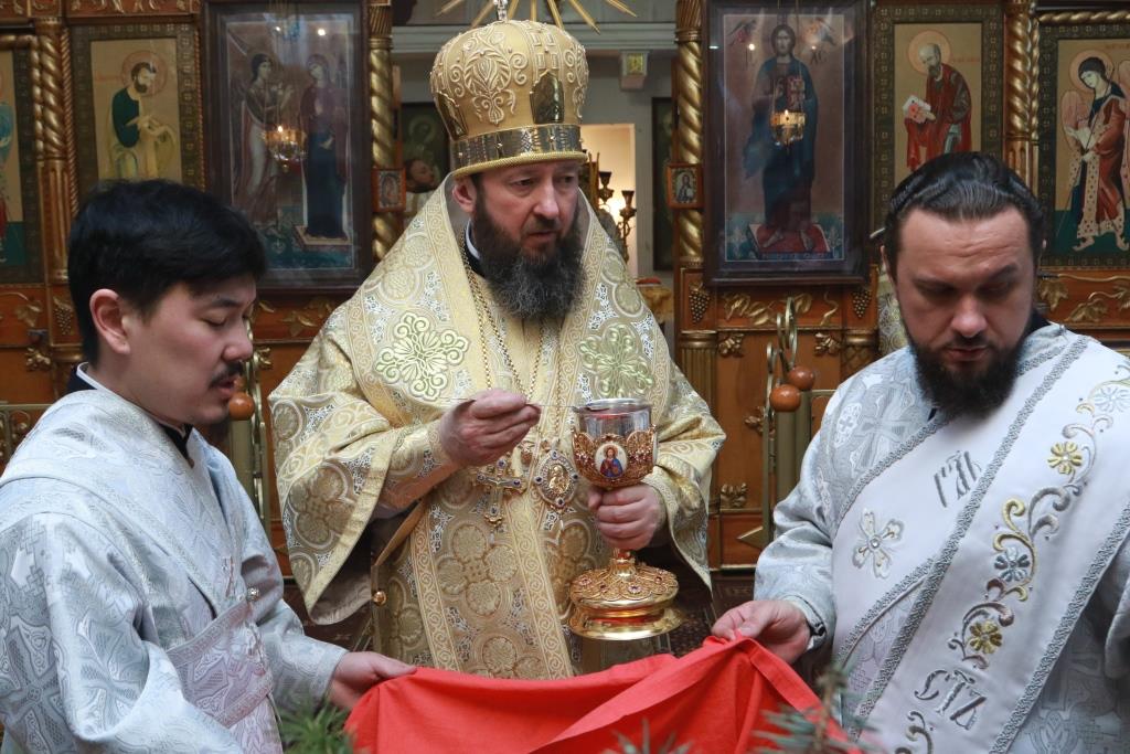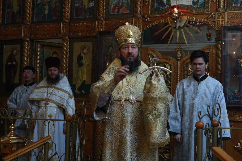 Преосвященнейший епископ Усть-Каменогорский и Семипалатинский Амфилохий совершил Божественную Литургию святителя Иоанна Златоуста в Богородице-Рождественском города Усть-Каменогорска. Владыке епископу сослужили: духовник епархии архимандрит Спиридон (Теплухин), настоятель храма протоиерей Евгений Яганов, ключарь Андреевского кафедрального собора иеромонах Никодим (Авдеев), секретарь епархии диакон Илия Кван, протодиакон Андрей Дудник.