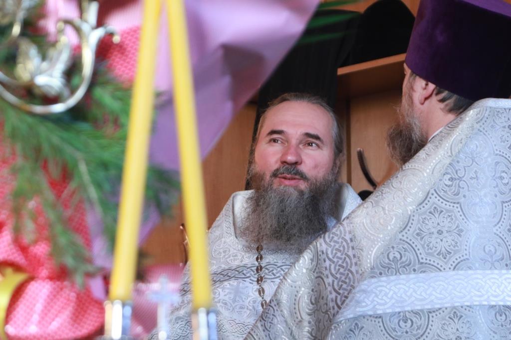 Его Преосвященству сослужили: духовник Усть-Каменогорской епархии архимандрит Спиридон (Теплухин), благочинный Усть-Каменогорского церковного округа настоятель Покровского храма иерей Алексий Анищенко, ключарь Андреевского кафедрального собора иеромонах Никодим (Авдеев), клирик Покровской церкви иерей Роман Подрезов, секретарь епархии диакон Илия Кван, протодиакон Андрей Дудник, диакон Александр Якушев.