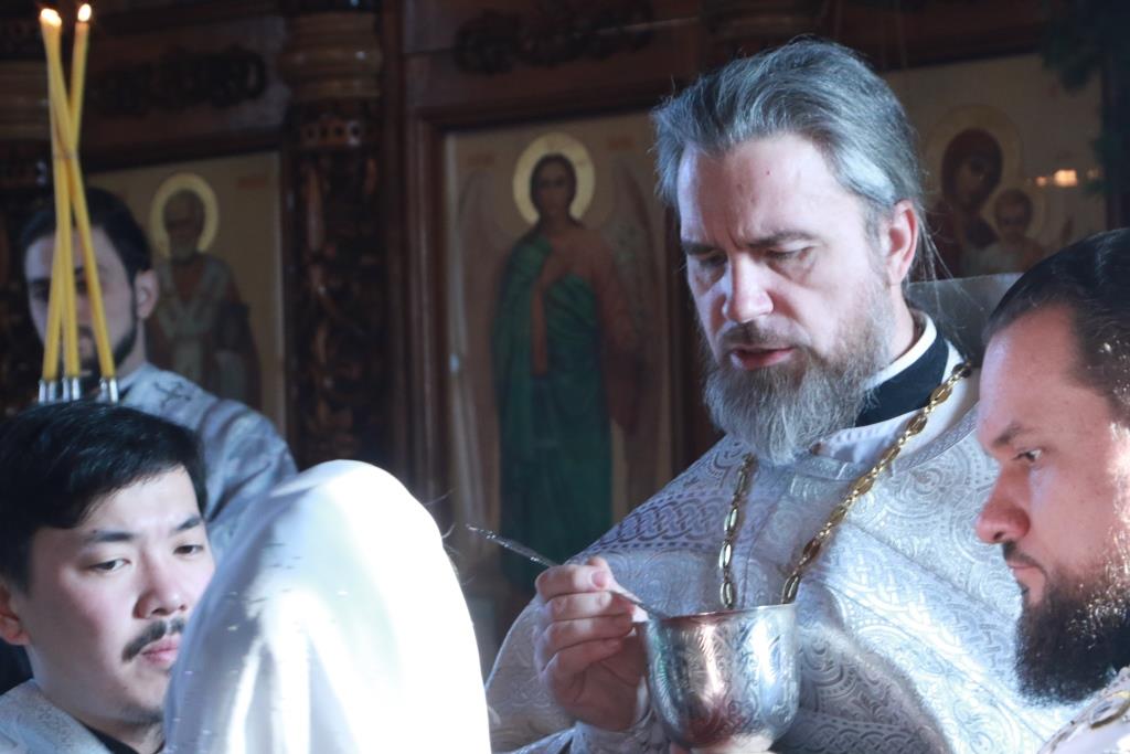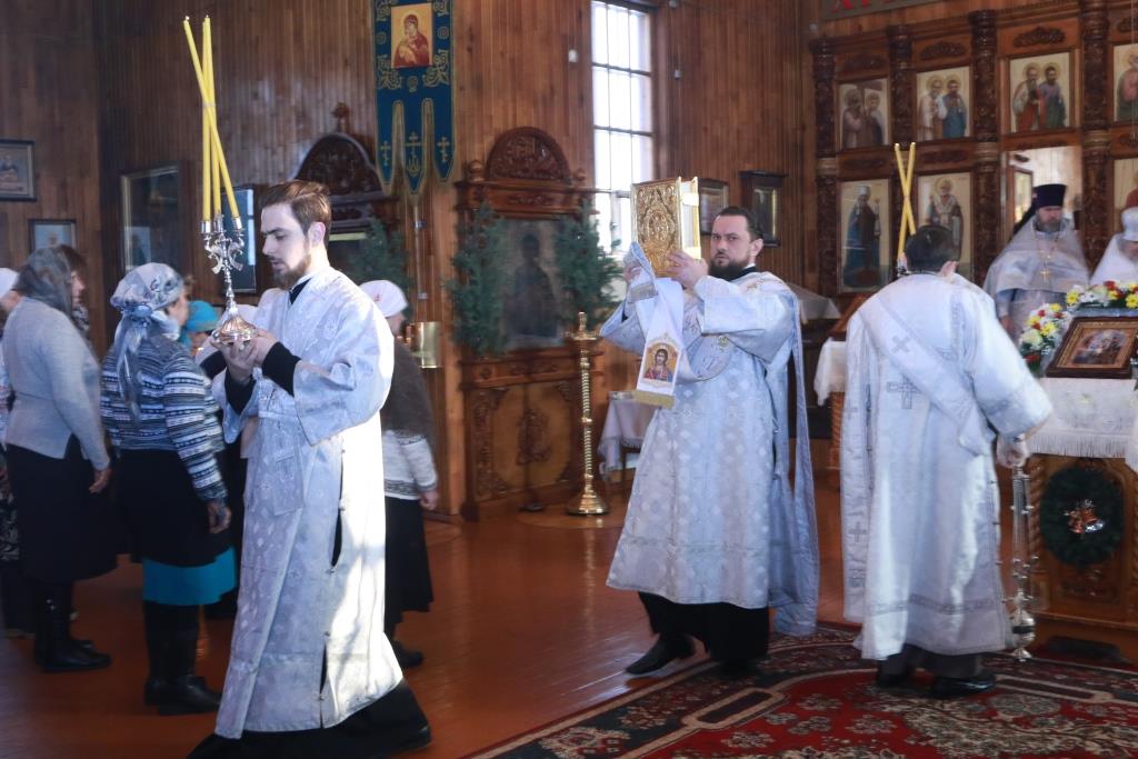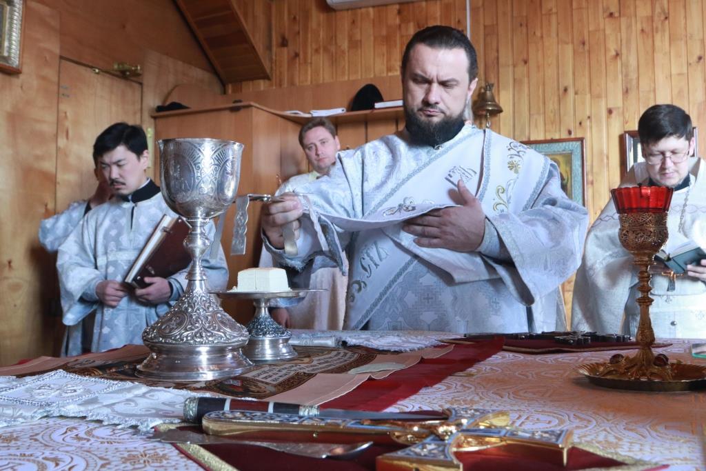Песнопения Божественной Литургии исполнял хор под управлением регента О. Афанасьевой. На запричастном стихе проповедовал иерей Алексий Анищенко.