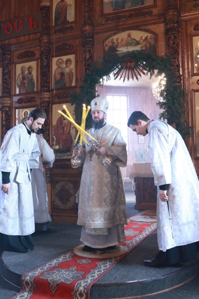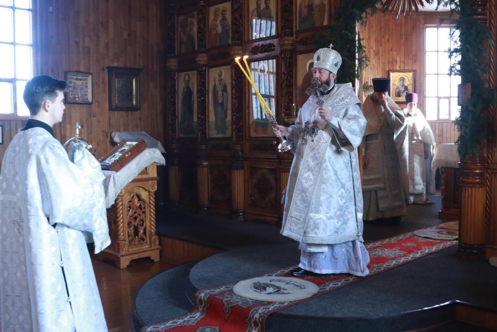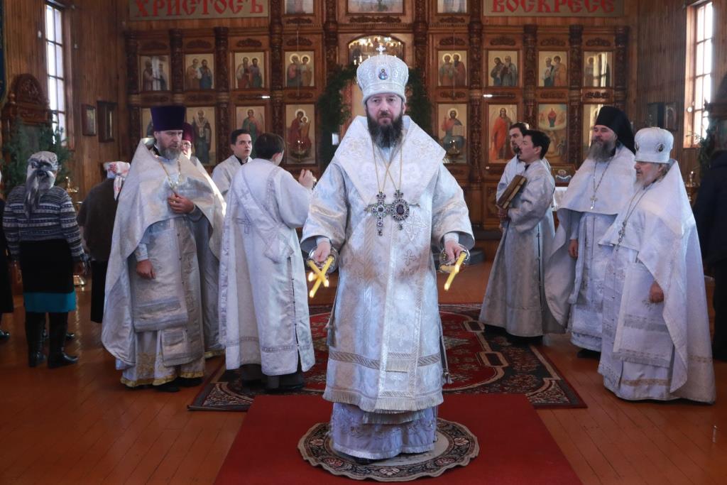 Преосвященнейший епископ Усть-Каменогорский и Семипалатинский Амфилохий посетил с Архипастырским визитом храм в честь Покрова Божией Матери, где в день Крещенского сочельника возглавил служение особого предпраздничного богослужения – Царских часов и Великой вечерни в соединении с Божественной Литургией святителя Василия Великого.