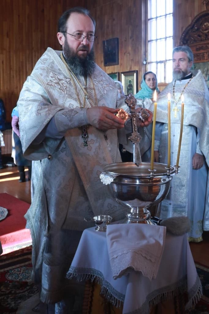 По установившейся церковной практике, после заамвонной молитвы епископ Амфилохий совершил освящение агиасмы. После освящения воды Преосвященнейший Владыка обратился к собравшимся со словами проповеди.