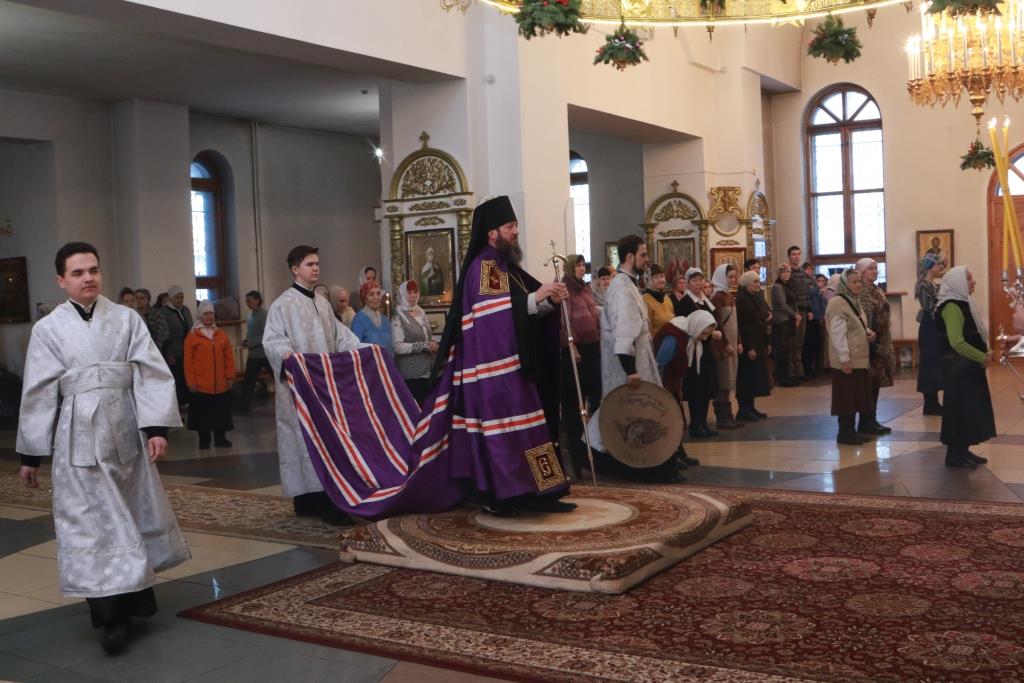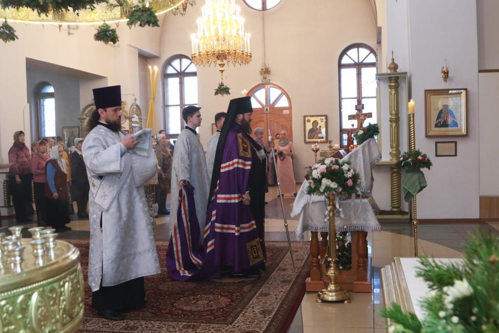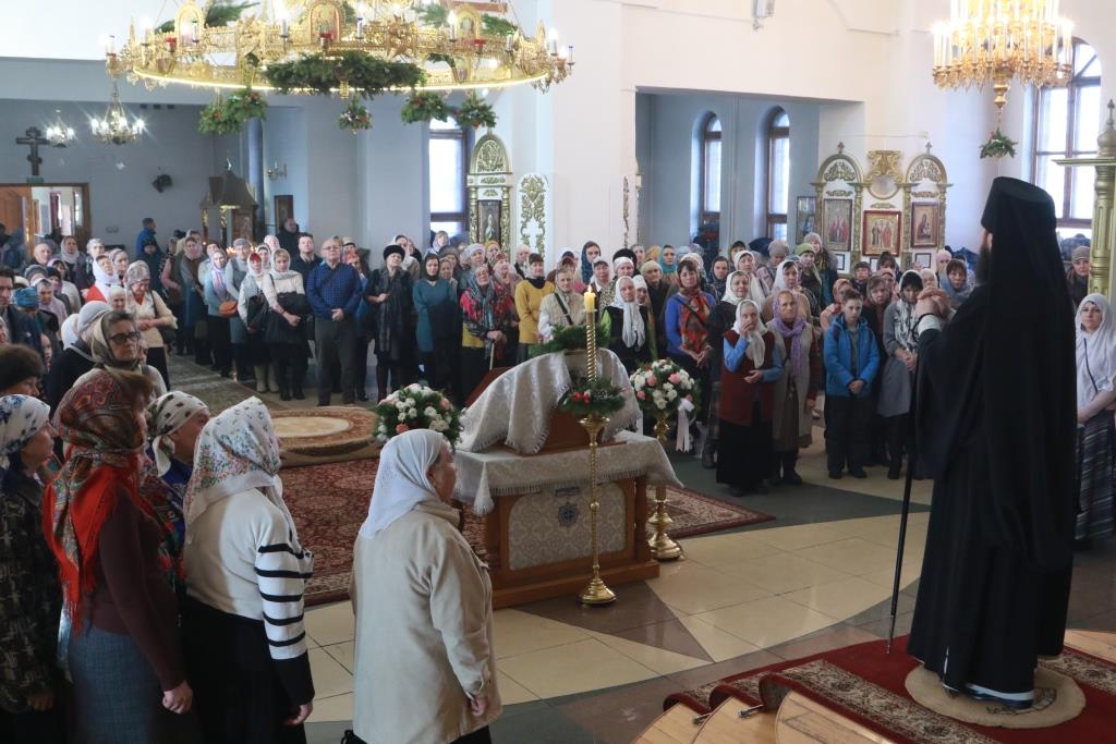 Песнопения Божественной Литургии исполнял хор кафедрального соборного храма под управлением регента Н. Романцовой. За богослужением молились прихожане главного храма Восточного Казахстана, насельники Свято-Троицкого мужского монастыря, сотрудники епархиального управления. Перед причастием мирян проповедовал ключарь кафедрального собора.